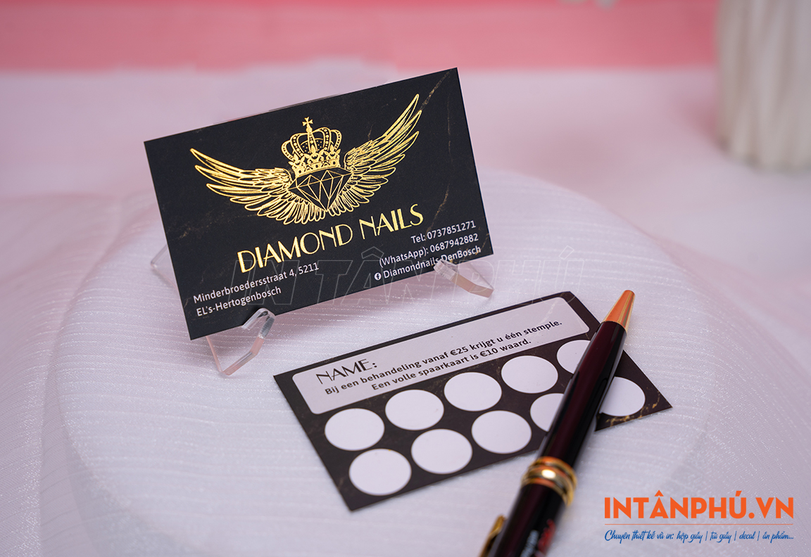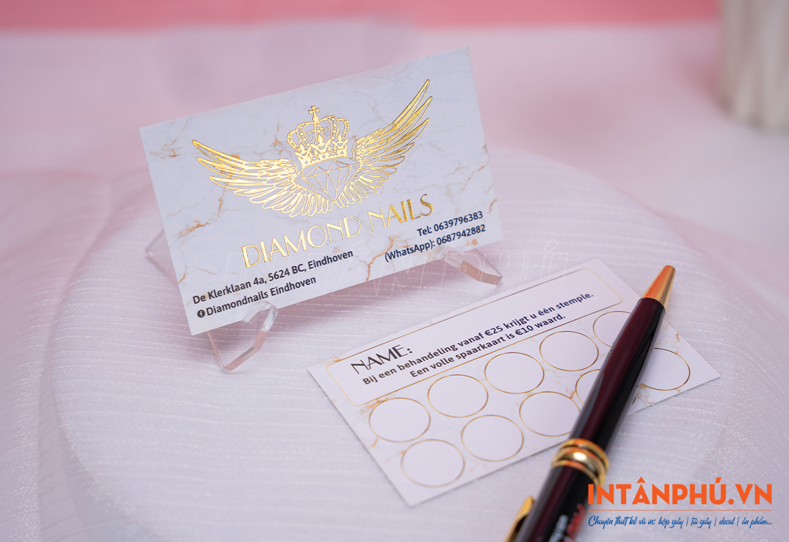 - Card in Offset + ép kim 1 mặt/ 1 màu: 5 hộp giá 350.000đ - 10 hộp 450.000đ