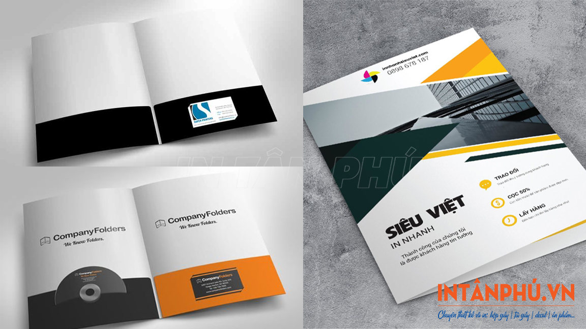 In folder hay in bìa hồ sơ, bìa kẹp hồ sơ là dịch vụ in ấn văn phòng phẩm quan trọng, được hầu hết doanh nghiệp, công ty, tổ chức sử dụng để đựng tài liệu, hợp đồng, hồ sơ nội bộ và tài liệu gửi khách hàng. Những mẫu folder được thiết kế đẹp, in ấn chuyên nghiệp không chỉ giúp sắp xếp giấy tờ gọn gàng mà còn góp phần xây dựng hình ảnh thương hiệu chỉn chu, uy tín trong mắt đối tác. Trong bài viết này, In Tân Phú sẽ cùng quý bạn đọc tìm hiểu folder là gì? Vai trò và lợi ích khi in folder, chất liệu, công nghệ in folder, các mẫu folder đẹp được sử dụng phổ biến hiện nay, … Mời quý bạn đọc cùng theo dõi.