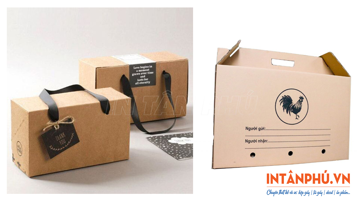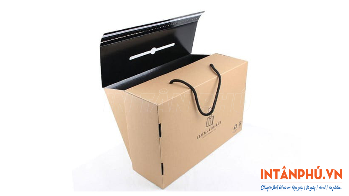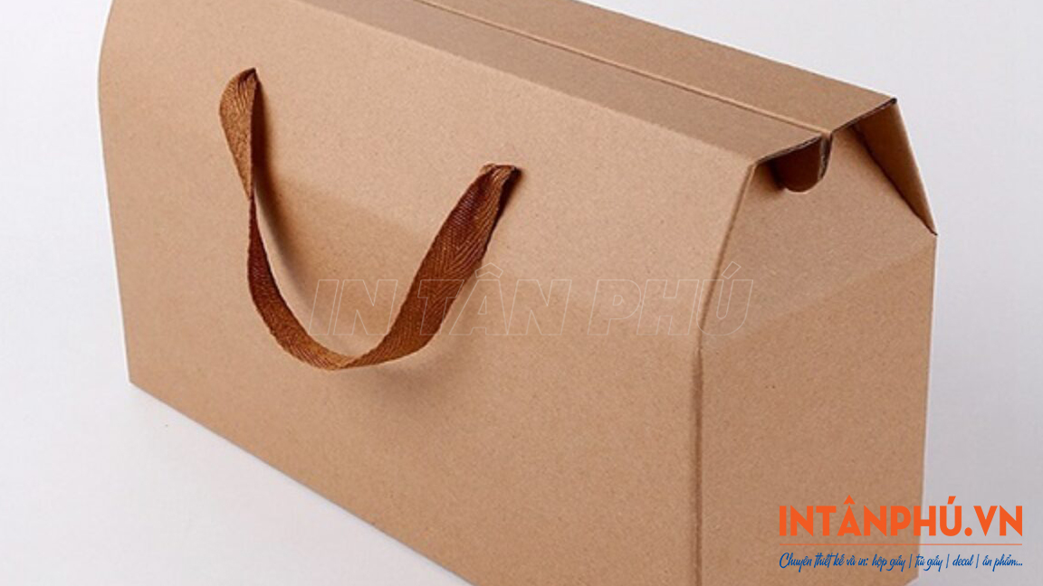 • Hộp quai xách liền thân: Tay cầm được cắt gập ngay trên phần nắp hộp, thuận tiện và chắc chắn.