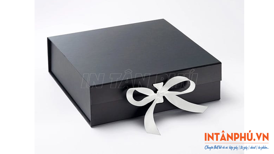 Hộp carton đen nắp gập kèm nơ đẹp mắt