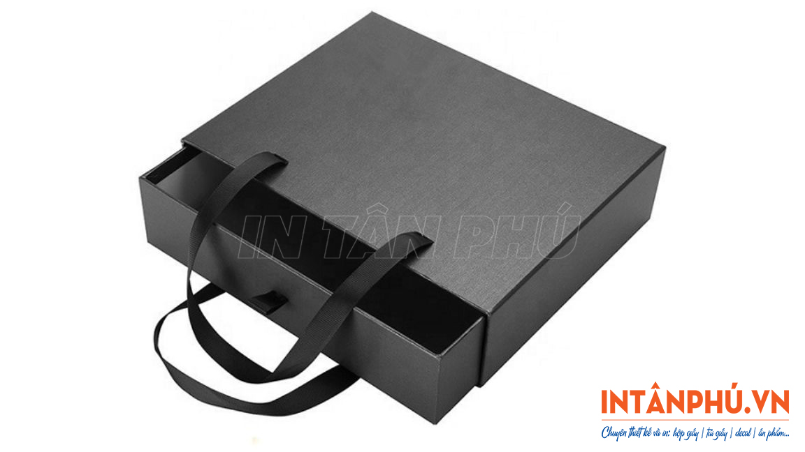 Hộp carton đen nắp kéo kèm dây xách tiện dụng