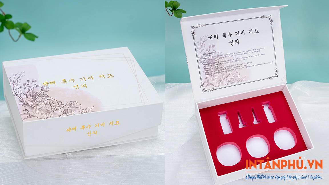 • Dịch vụ linh hoạt, phù hợp với mọi ngành hàng từ mỹ phẩm, thời trang, thực phẩm, quà tặng, … đa dạng mẫu từ hộp cứng nam châm, hộp âm dương, hộp cửa sổ, hộp bao diêm, …