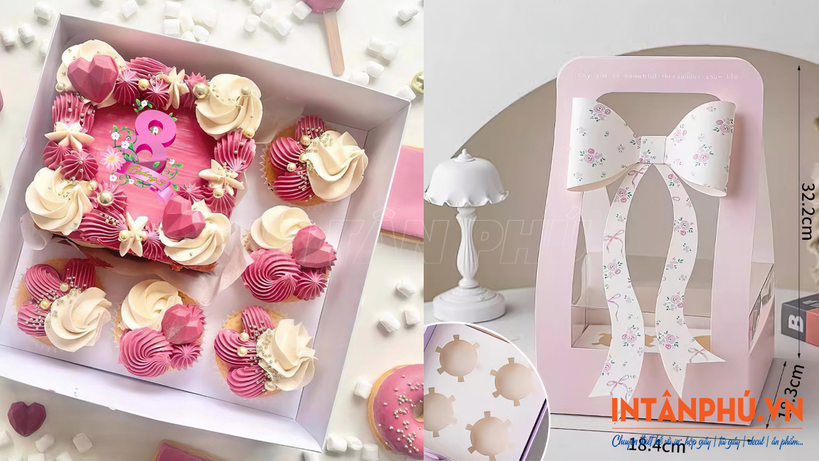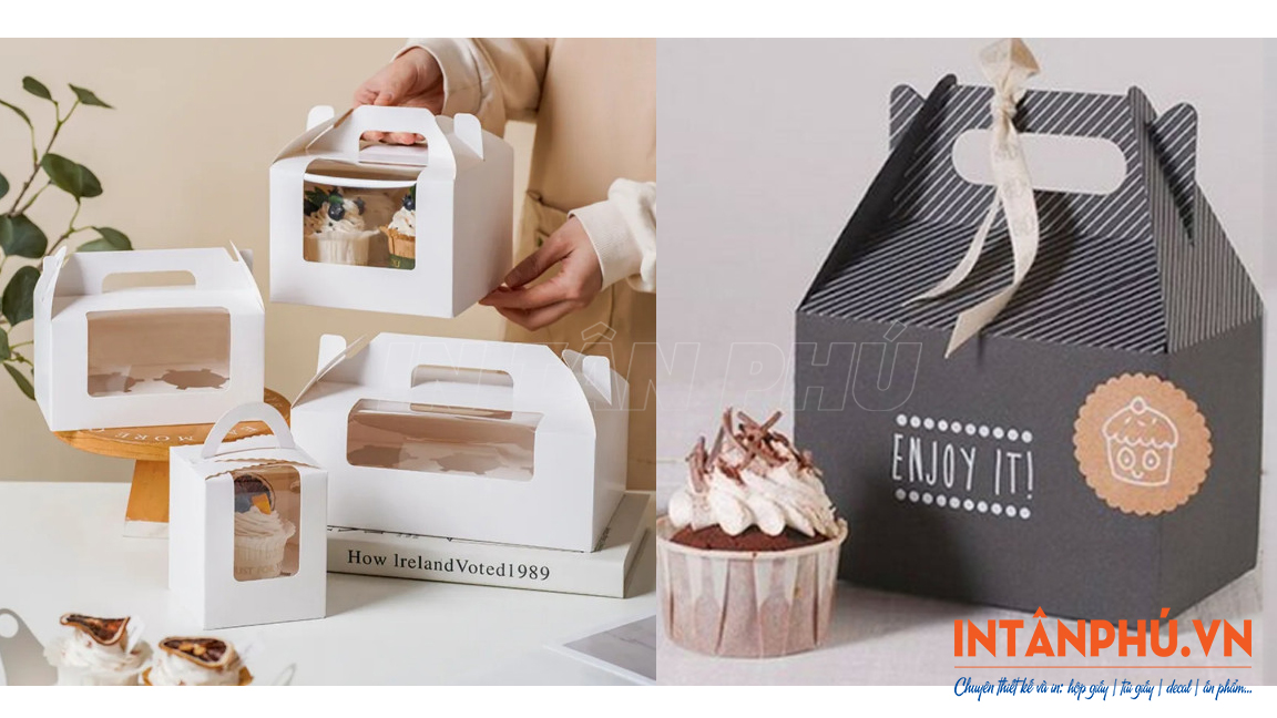 Hộp bánh cupcake tay cầm, thiết kế đẹp