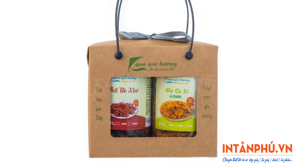 Hộp carton đựng khô bò quai xách tiện dụng
