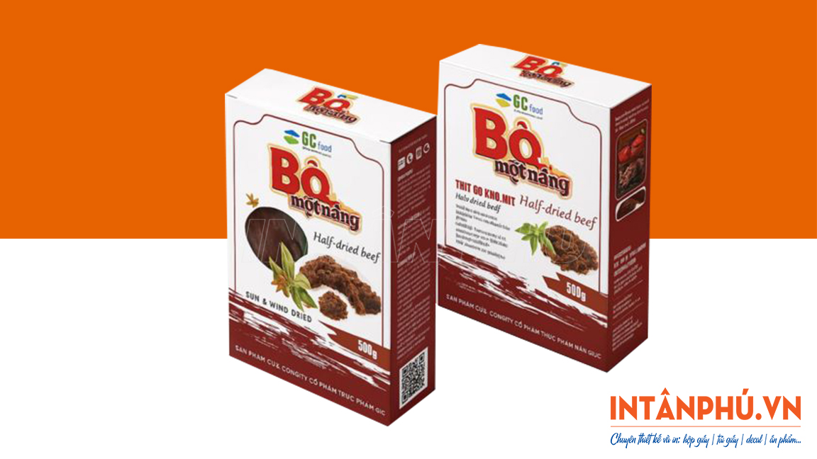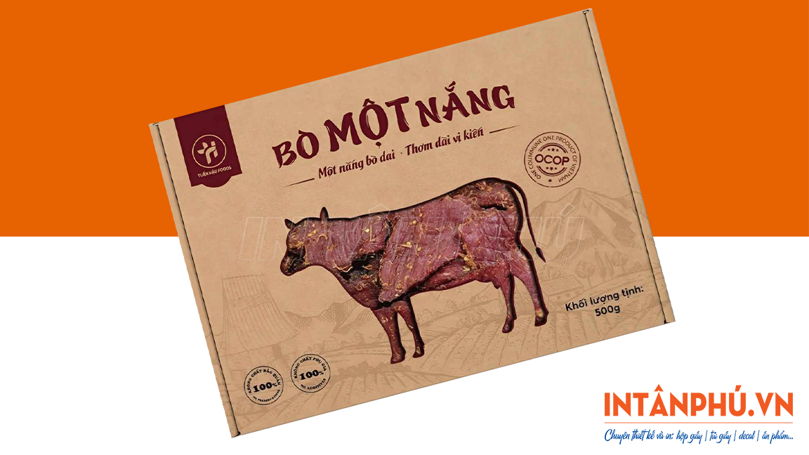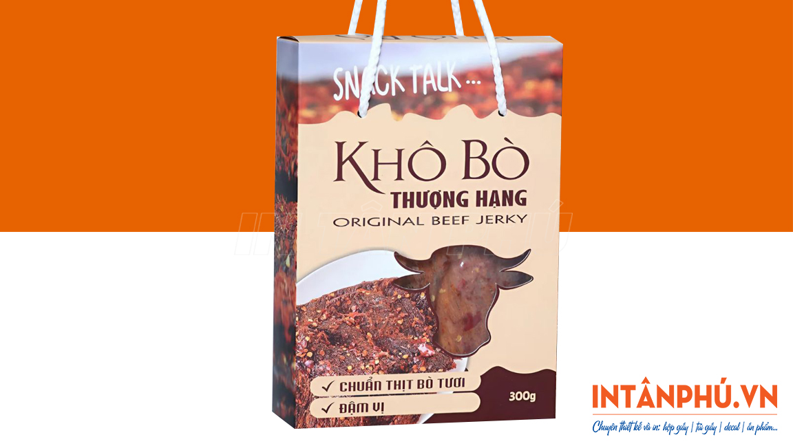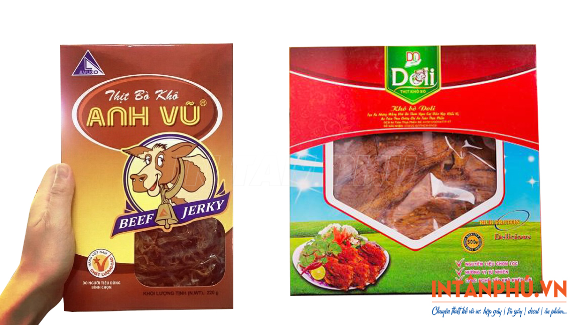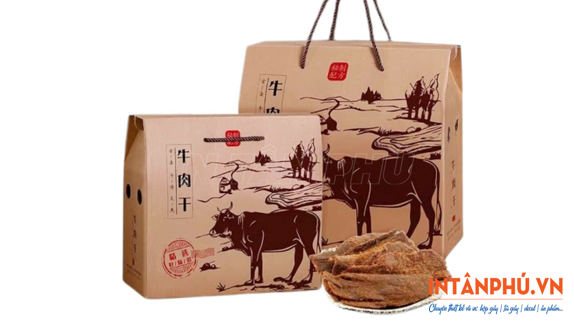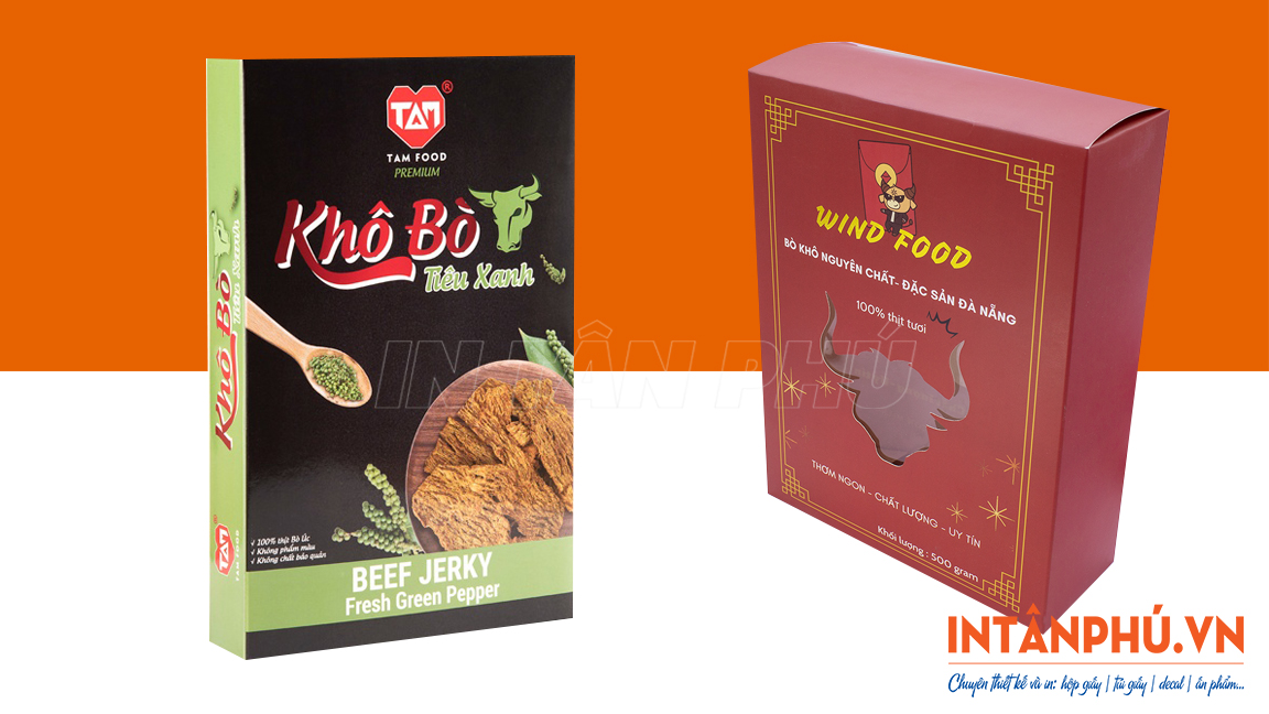 Hộp giấy đựng khô bò thiết kế đẹp mắt, in logo ấn tượng