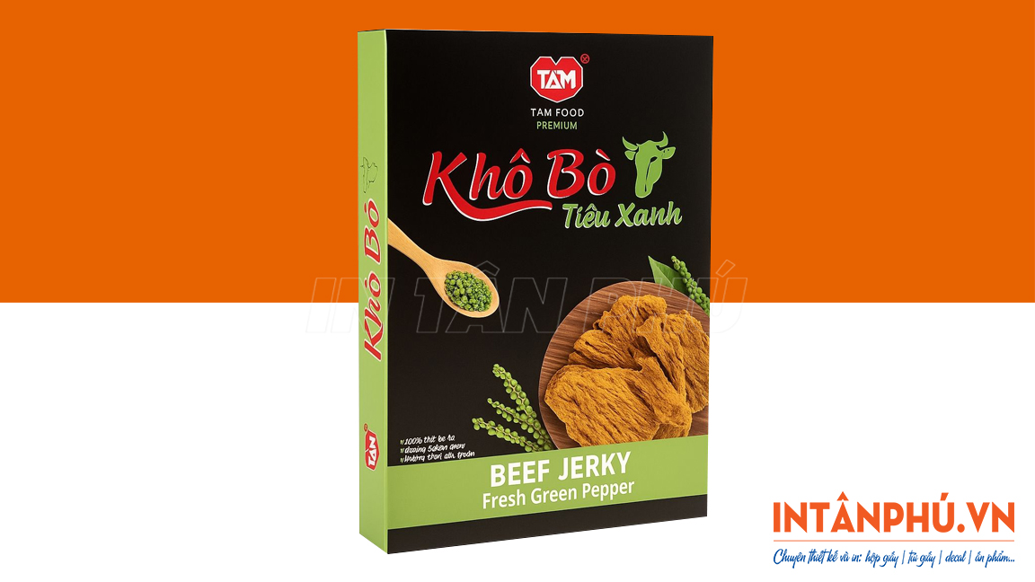 Khô bò là món ăn vặt khoái khẩu của nhiều người và tần suất tiêu thụ sản phẩm cũng rất đáng kể trên thị trường. Vì thế, việc đầu tư in hộp giấy đựng khô bò đẹp mắt, chuyên nghiệp sẽ tạo lợi thế cạnh tranh và nâng cao giá trị sản phẩm. Bài viết này sẽ giúp bạn tìm hiểu lợi ích của hộp giấy đựng khô bò, các kiểu dáng phổ biến, loại giấy thường dùng và dịch vụ in hộp giá gốc tại xưởng của In Tân Phú.
