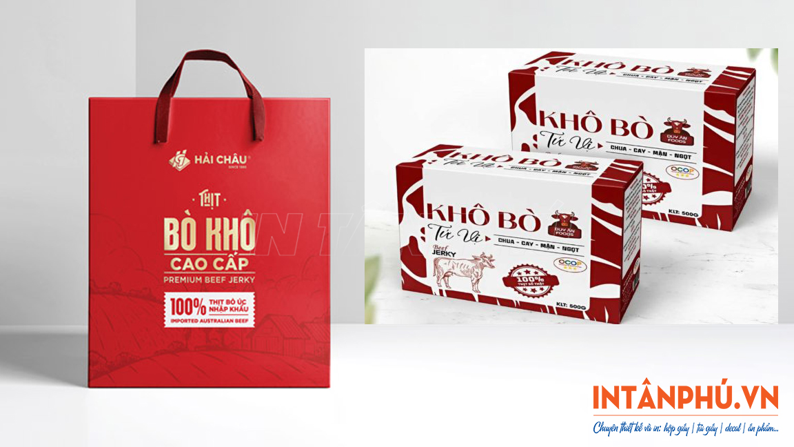 Hộp giấy đựng khô bò cao cấp thiết kế sang trọng