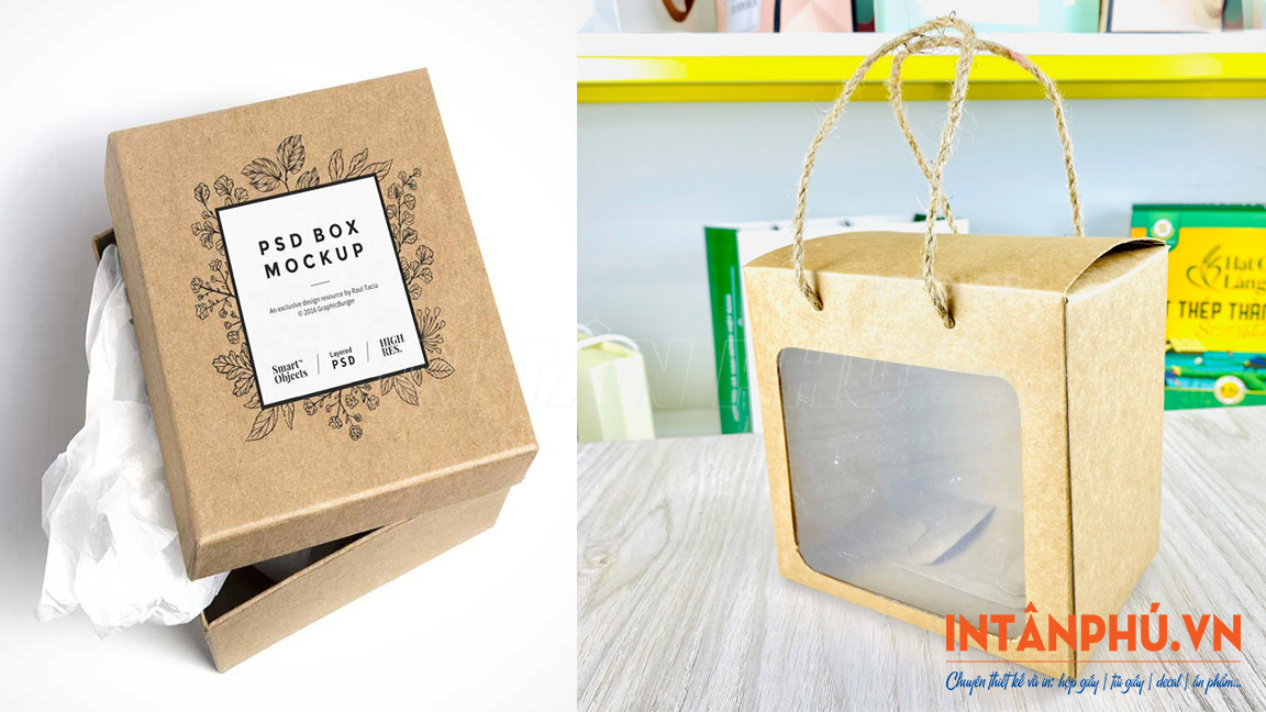 Hộp giấy có thẻ treo (trái) - tay cầm (phải) tiện dụng