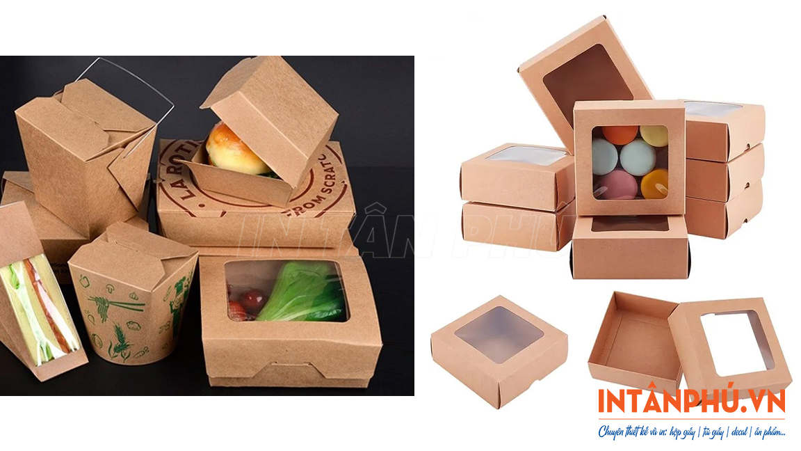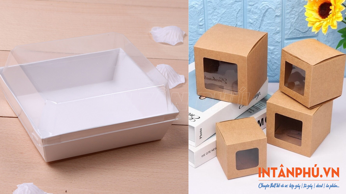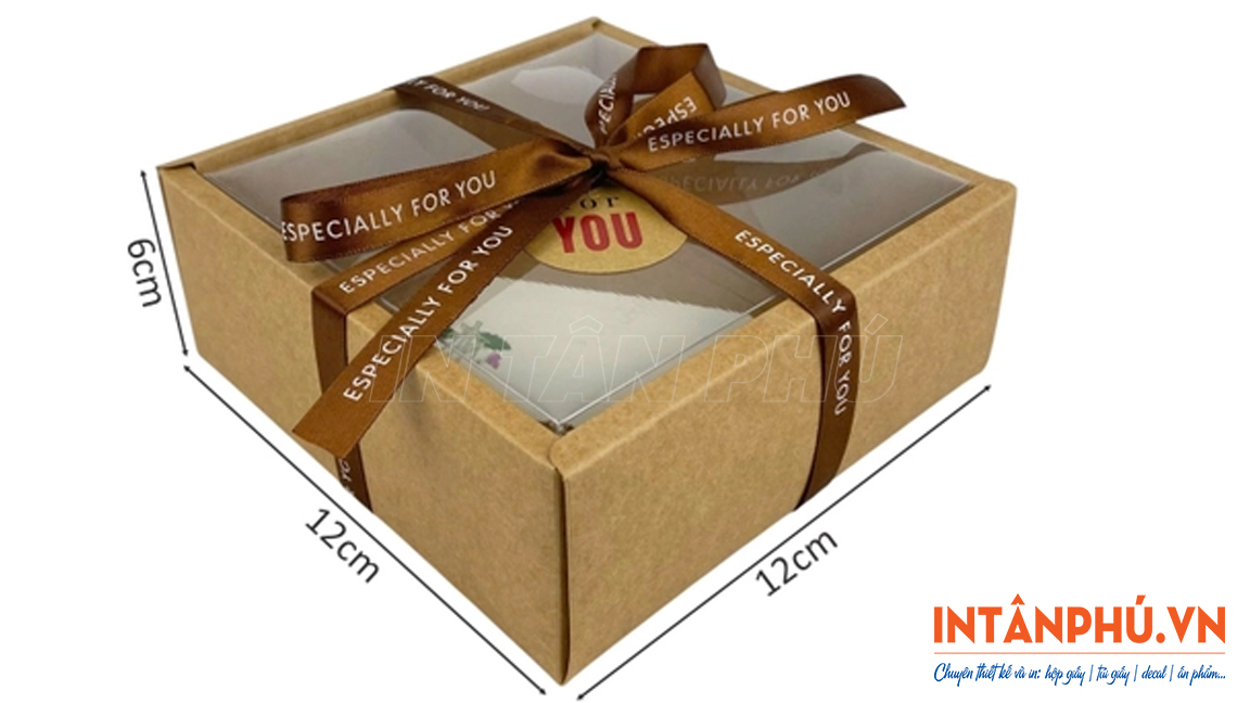 • Hộp Kraft vuông có cửa sổ: Tạo điểm nhấn bằng ô cửa trong suốt, giúp khách hàng nhìn thấy sản phẩm bên trong.