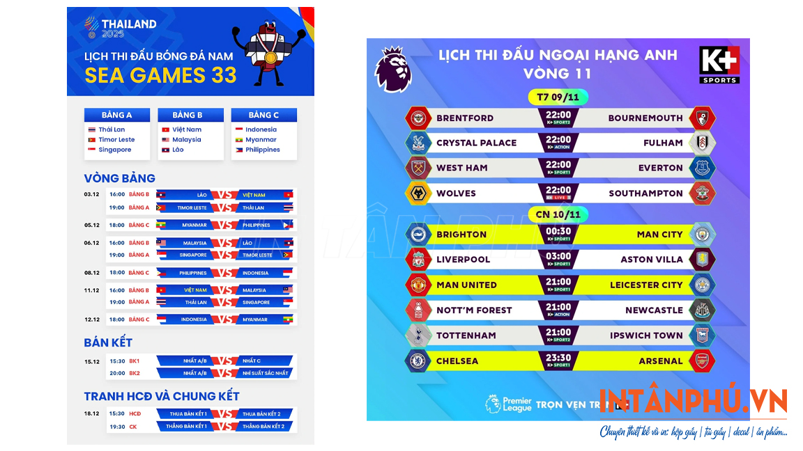 In Lịch Thi Đấu Bóng Đá Giá Rẻ, In Nhanh Tại In Tân Phú