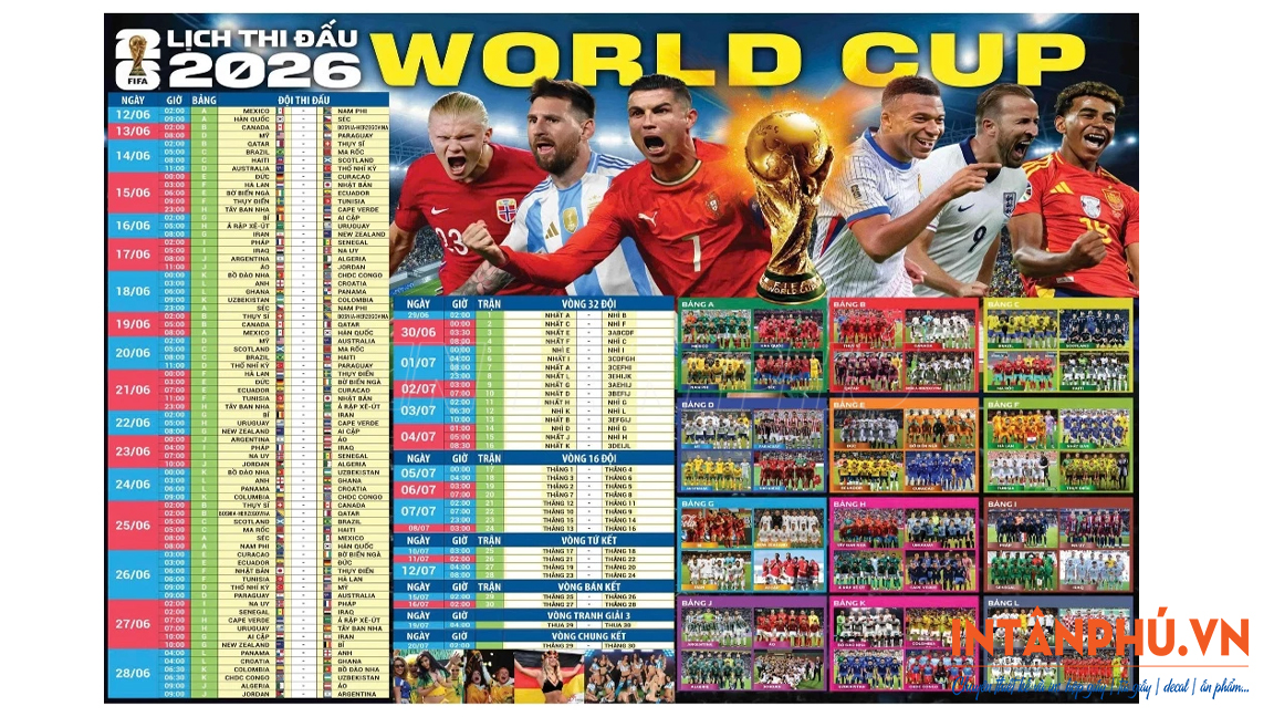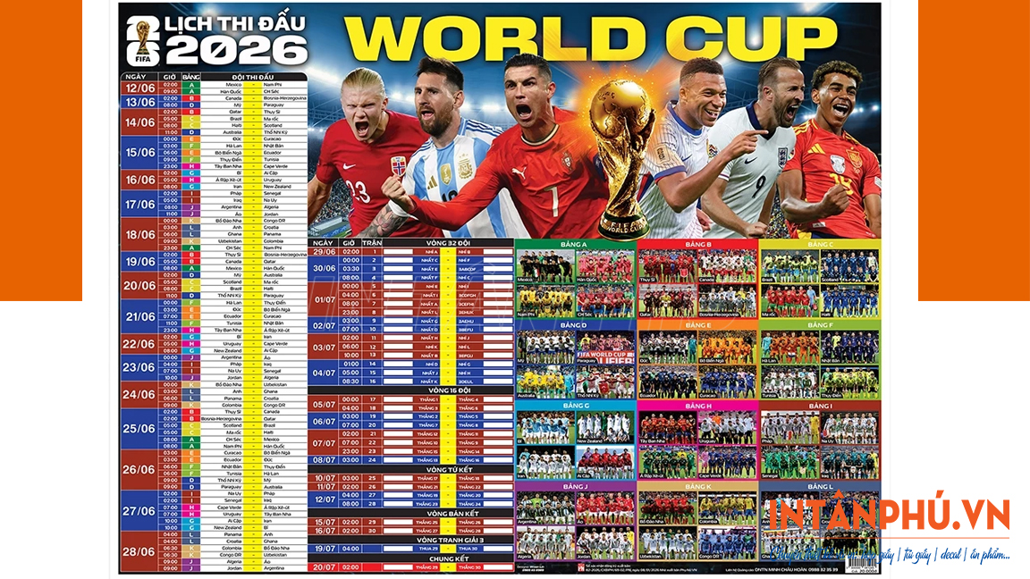 In Tân Phú - Địa chỉ in lịch thi đấu World Cup 2026 theo giờ Việt Nam, khổ lớn theo yêu cầu đáng tin cậy