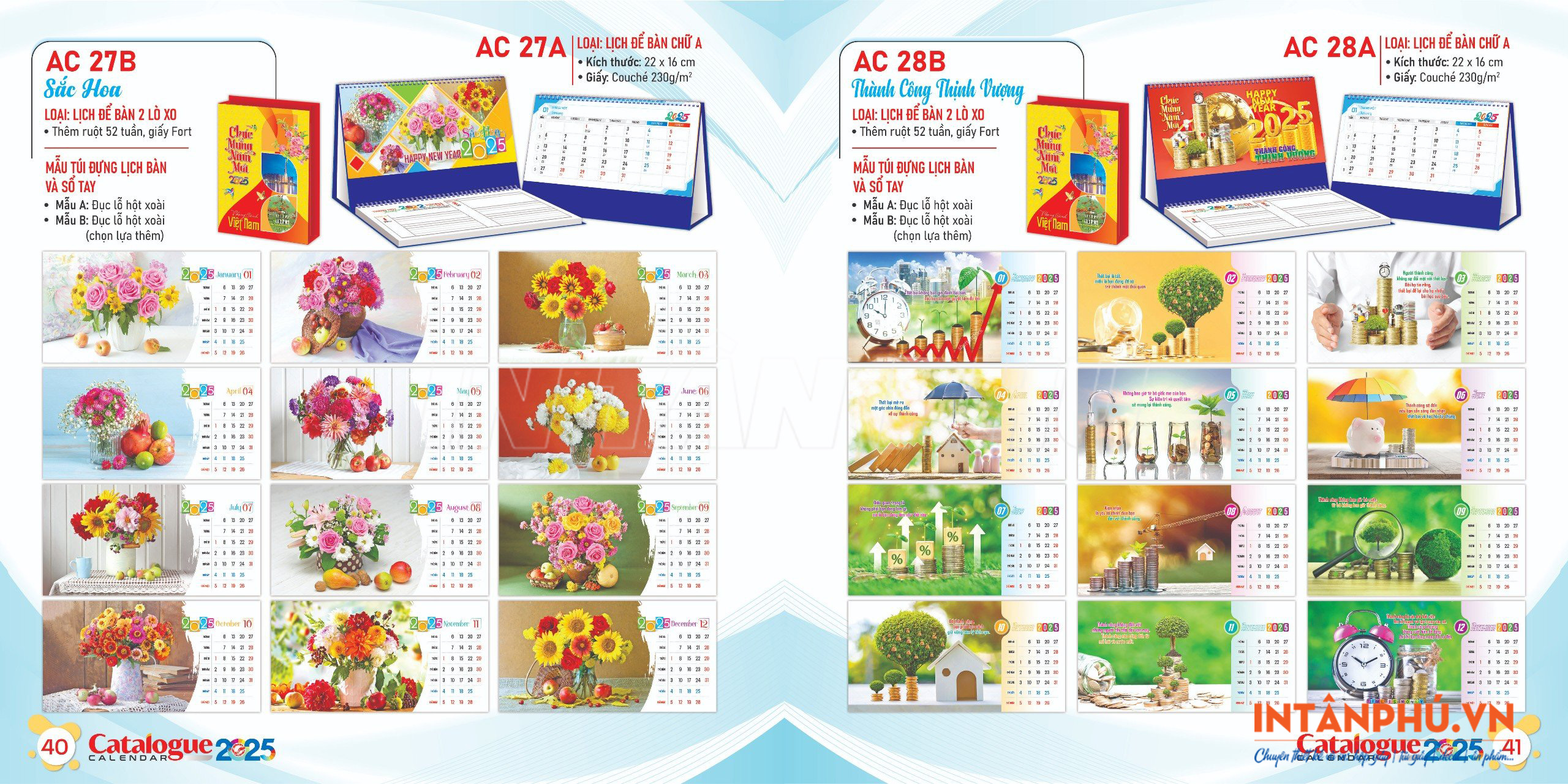 Công ty In Tân Phú cung cấp các loại lịch đa dạng, bao gồm: