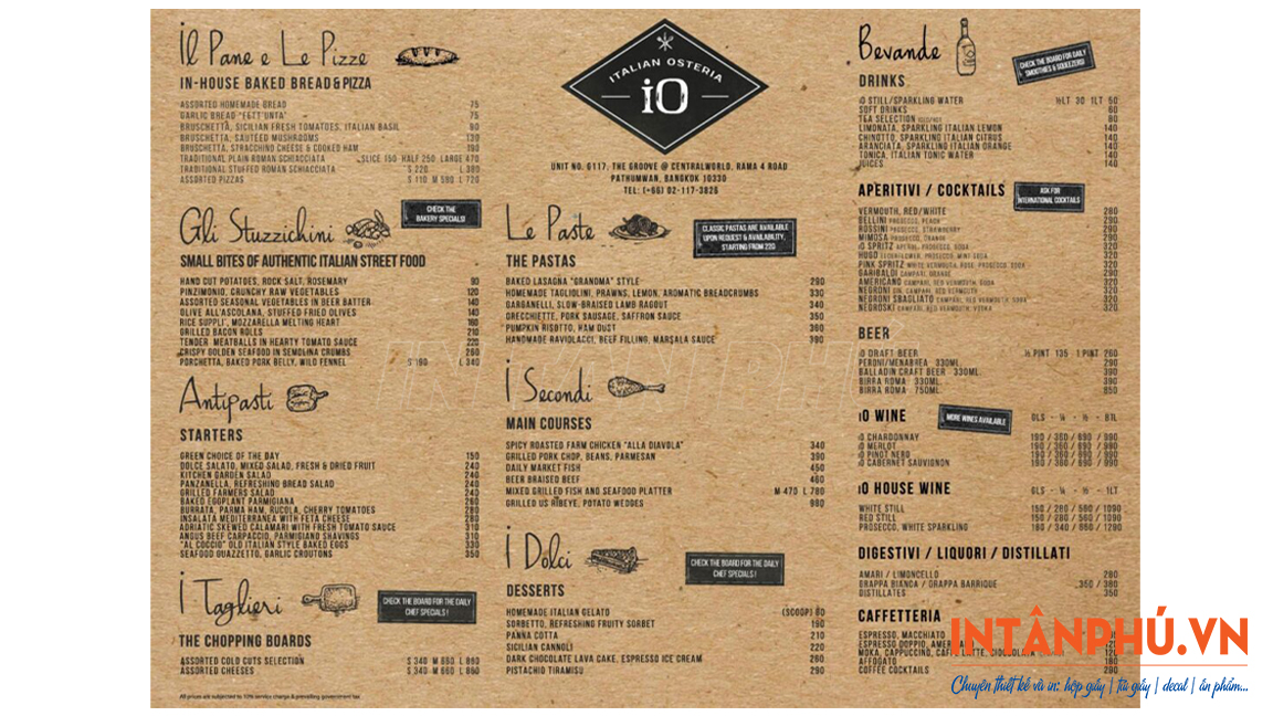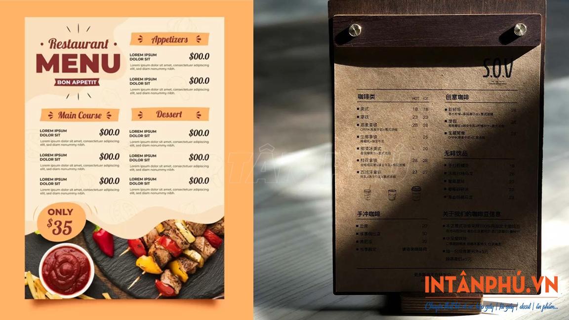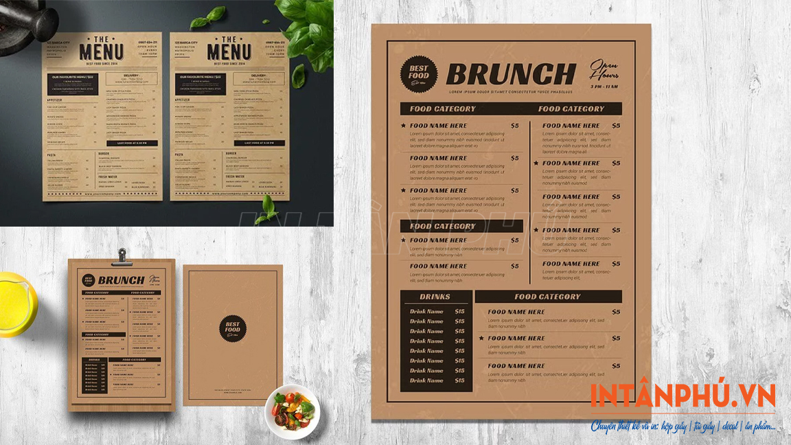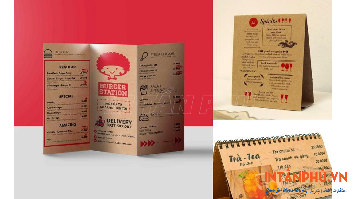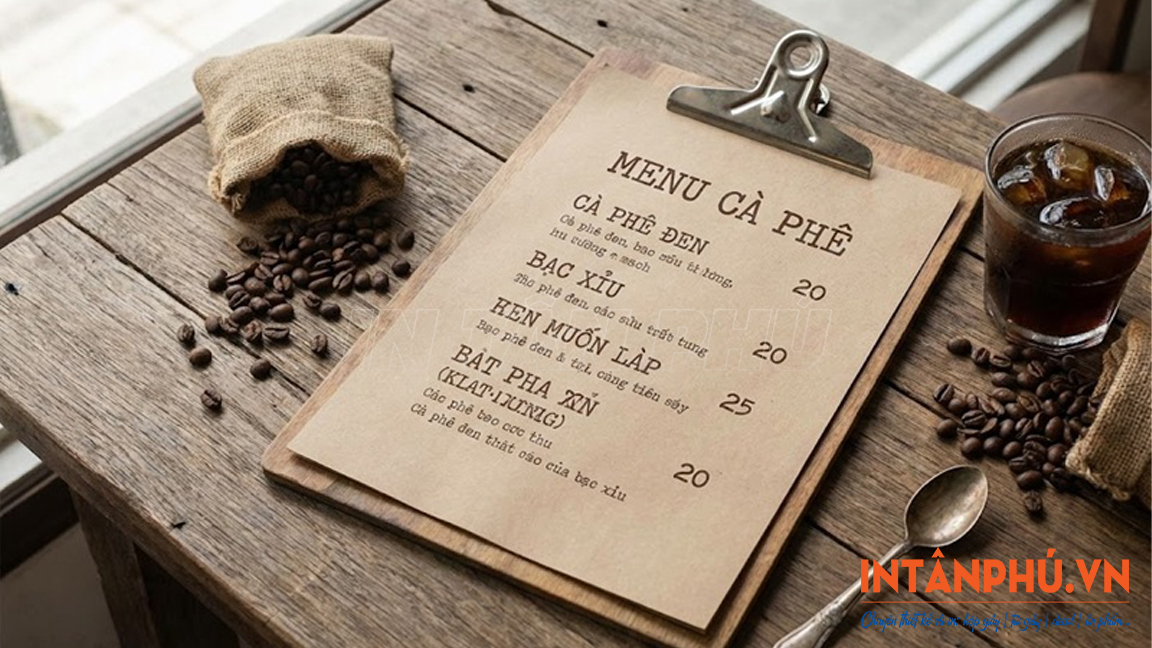 In menu giấy Kraft giá rẻ, thiết kế theo yêu cầu tại xưởng In Tân Phú