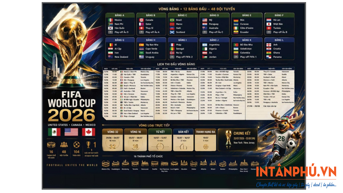 Dịch vụ in poster lịch thi đấu World Cup 2026 đẹp - giá xưởng tại In Tân Phú