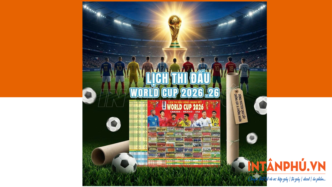 In poster lịch thi đấu World Cup 2026 không chỉ giúp bạn theo dõi giải đấu dễ dàng mà còn là công cụ marketing cực kỳ hiệu quả trong mùa bóng đá. Nếu bạn đang tìm kiếm giải pháp in ấn chất lượng, giá tốt, lấy nhanh – In Tân Phú là lựa chọn đáng tin cậy.