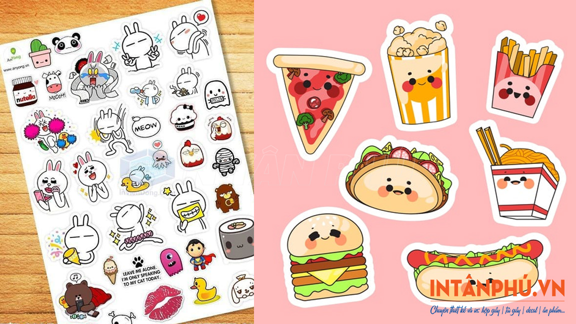 - Sticker kiểu dáng tự do (cắt bế theo hình nhân vật, icon, logo hoặc thiết kế riêng);
