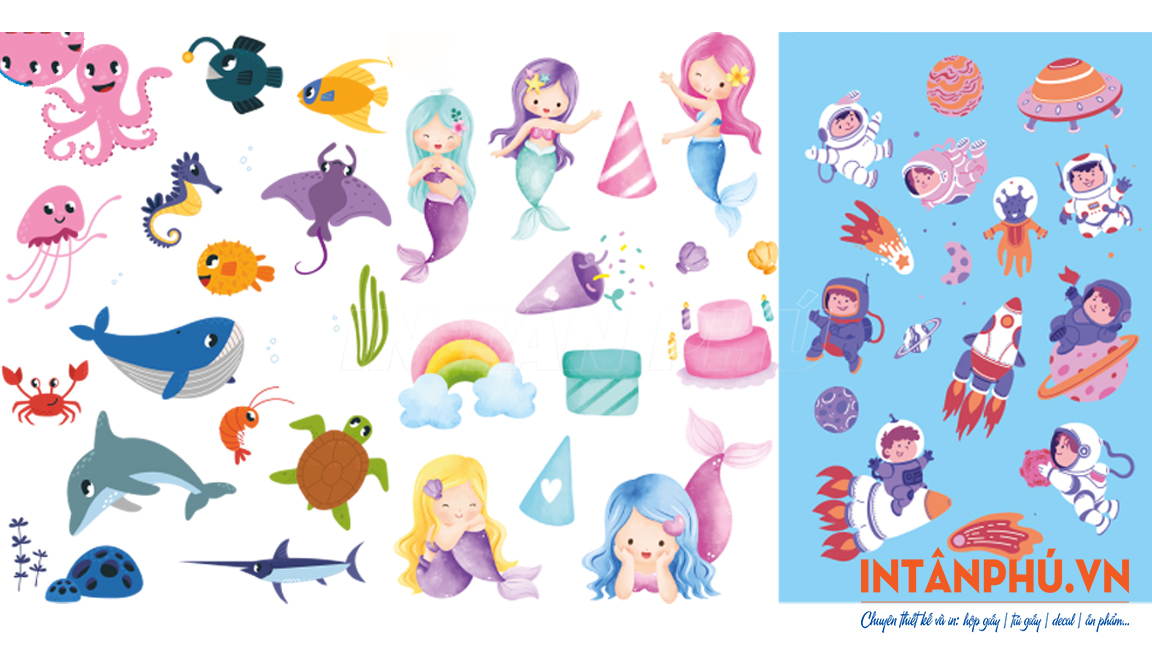- Sticker nhãn dán cho bé: Hình nhân vật hoạt hình, ngộ nghĩnh, dễ thương.