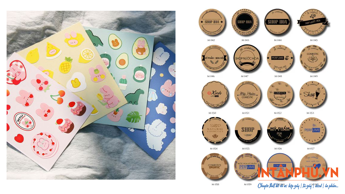 - Sticker mini: 2×2cm, 3×3cm (dán đồ nhỏ, chai lọ mini);