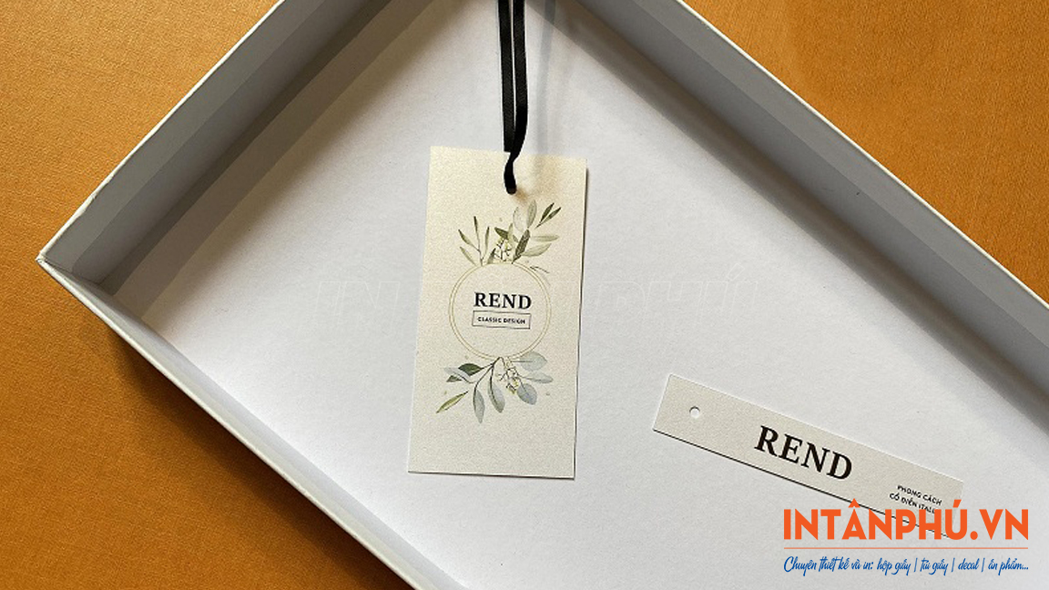 - Tag dáng dài: Kích thước 4 × 12cm, 5 × 14cm – phù hợp thời trang cao cấp