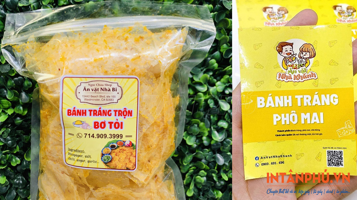In Tân Phú là đơn vị chuyên in tem nhãn thực phẩm với uy tín hơn 15 năm trong ngành, đặc biệt là in ấn các loại tem ăn vặt như: tem bánh tráng trộn, tem khô bò, tem chân gà, tem cơm cháy, …