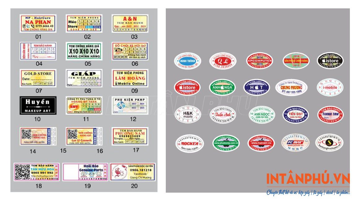 In Tân Phú là địa chỉ in bao bì, tem nhãn uy tín tại TPHCM với hơn 15 năm kinh nghiệm trong ngành. Chúng tôi sở hữu xưởng in chuyên nghiệp, đội ngũ kỹ thuật viên tay nghề cao, cam kết mang đến cho khách hàng những mẫu tem bảo hành điện thoại, tem decal, tem nhãn sản phẩm, … chất lượng cao với giá thành cạnh tranh.