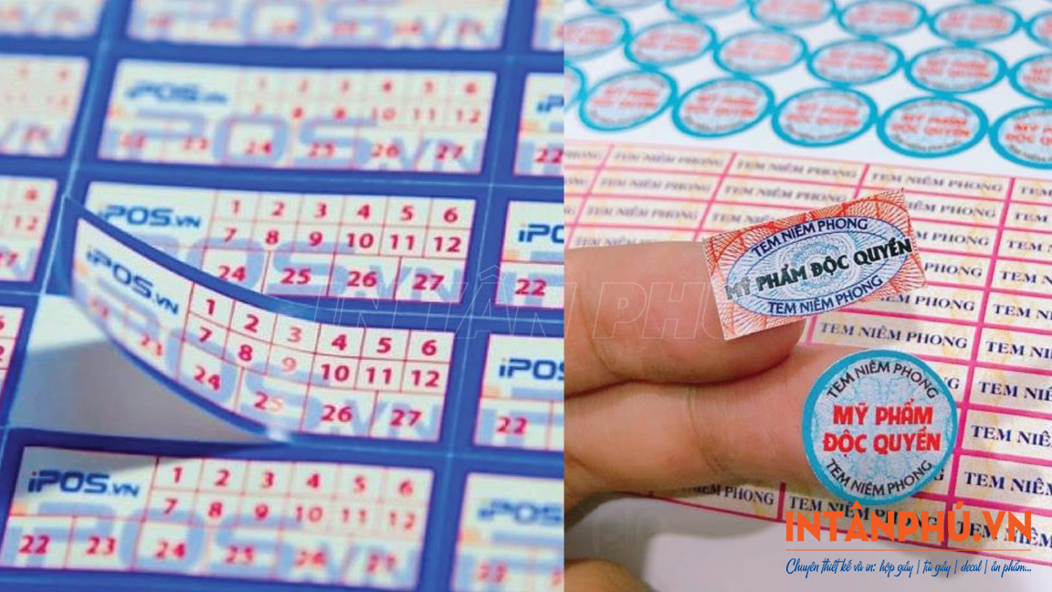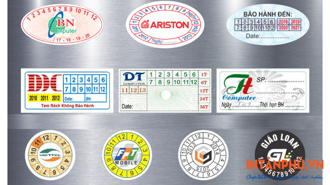 Đối với các sản phẩm công nghệ, điện tử, tem bảo hành thường được in bằng chất liệu hologram, decal 7 màu, yêu cầu công nghệ in hiện đại để đảm bảo độ bám dính, tính bảo mật và thẩm mỹ cao.
