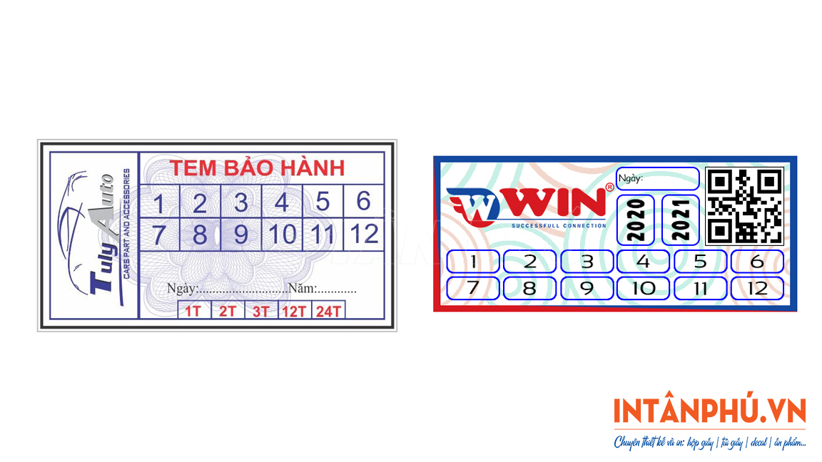 • Tem bảo hành hình chữ nhật: Kích thước 1 x 1.5cm, 1 x 2.5cm, 1 x 3cm, 1.5 x 3cm, 2 x 4cm, …