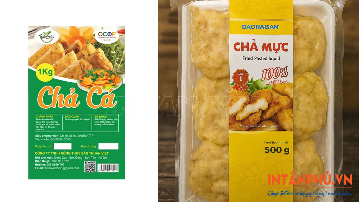 - Tem nhãn cho chả mực đóng gói tiêu chuẩn.