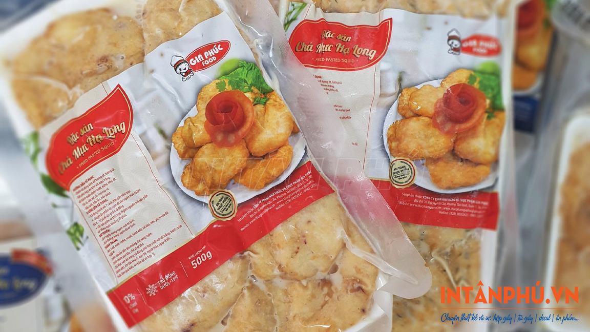 Decal giấy là chất liệu được ứng dụng rộng rãi trong ngành thực phẩm, đặc biệt với các sản phẩm tiêu dùng nhanh như chả mực.