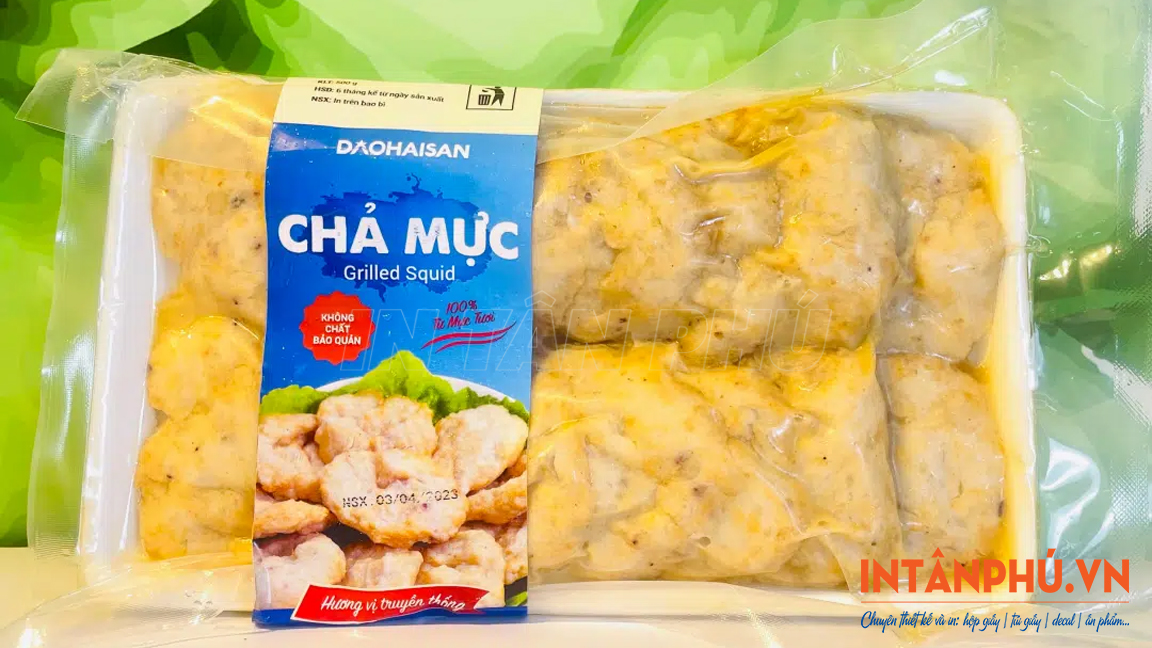 Decal nhựa là lựa chọn tối ưu cho các sản phẩm chả mực cần bảo quản lạnh, cấp đông hoặc thường xuyên tiếp xúc hơi ẩm.