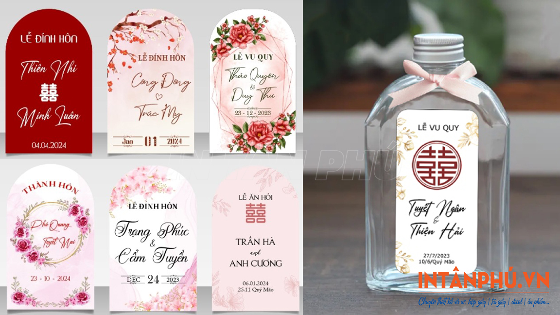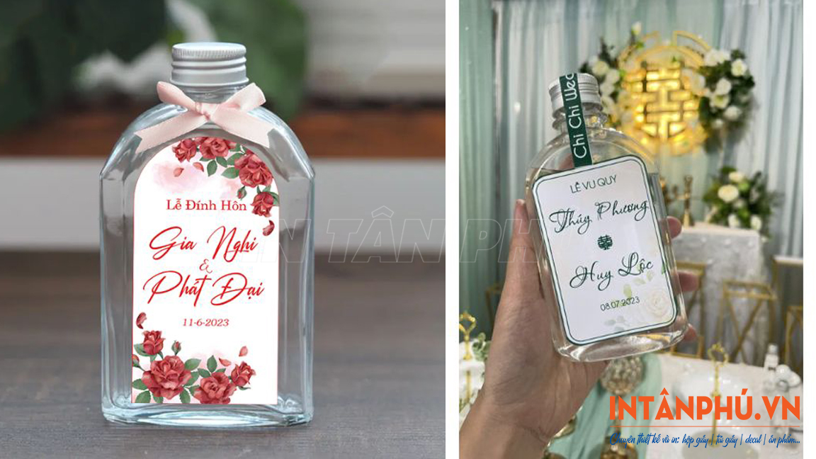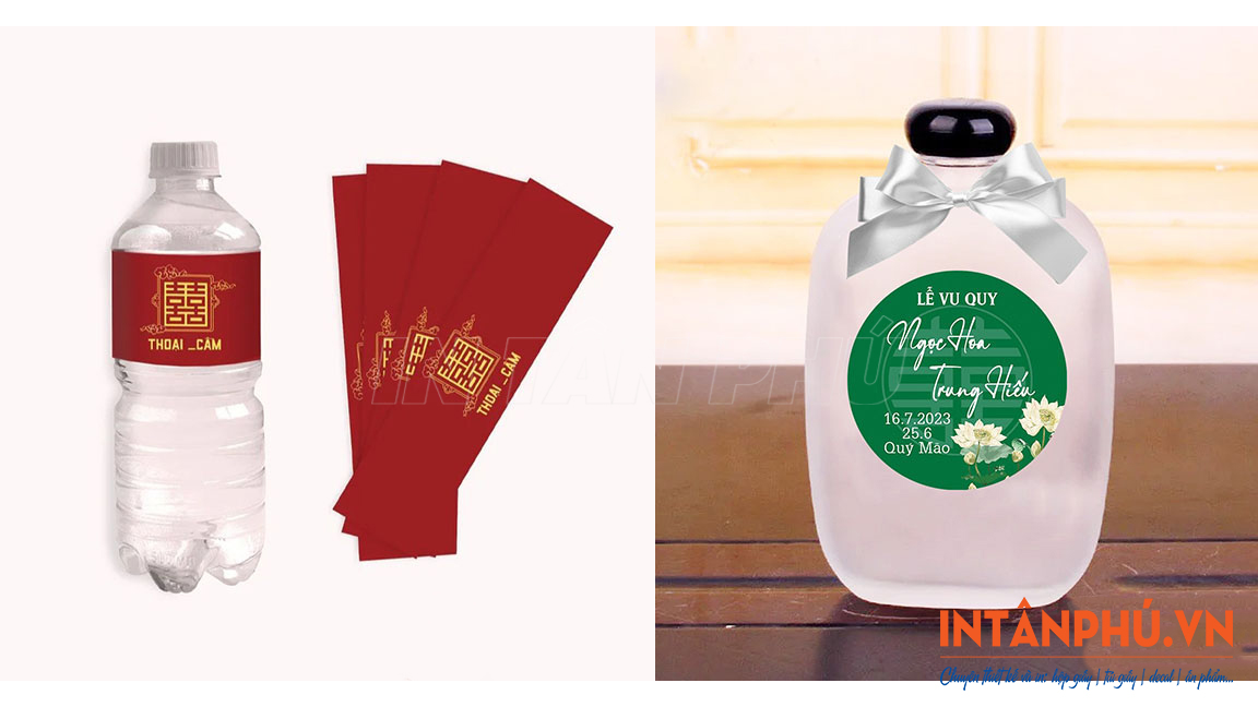 - Công nghệ in hiện đại: Sử dụng máy in offset và kỹ thuật số tiên tiến, đảm bảo tem nhãn dán chai nước đám cưới, đám hỏi có tính thẩm mỹ cao, phù hợp với phong cách tiệc cưới hiện đại.