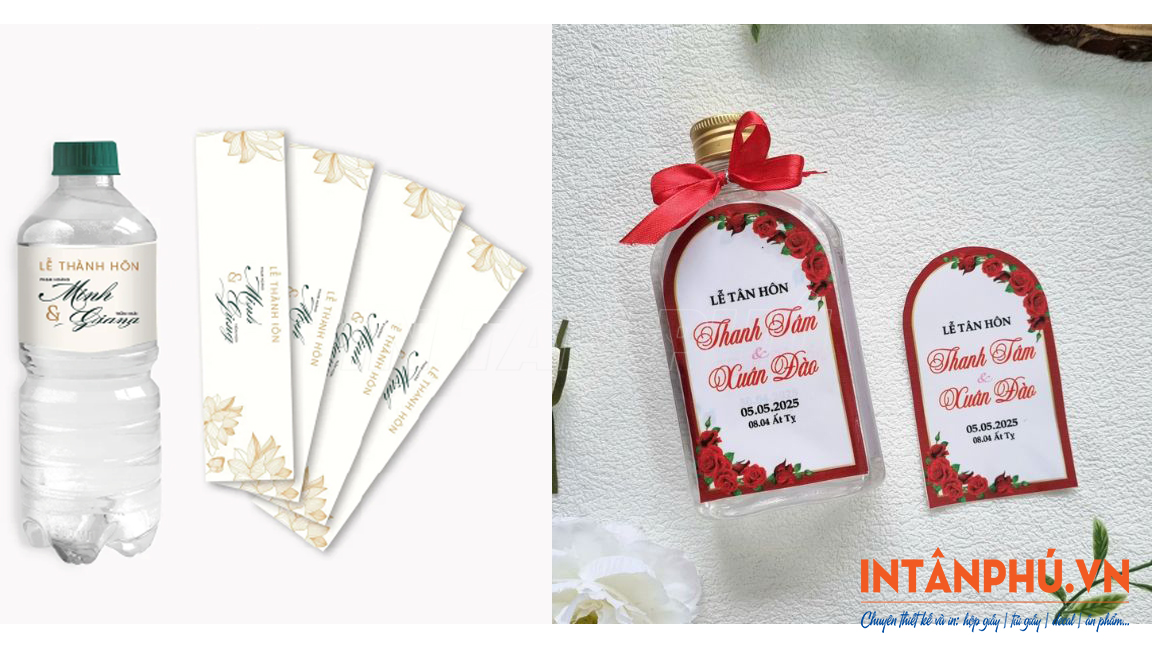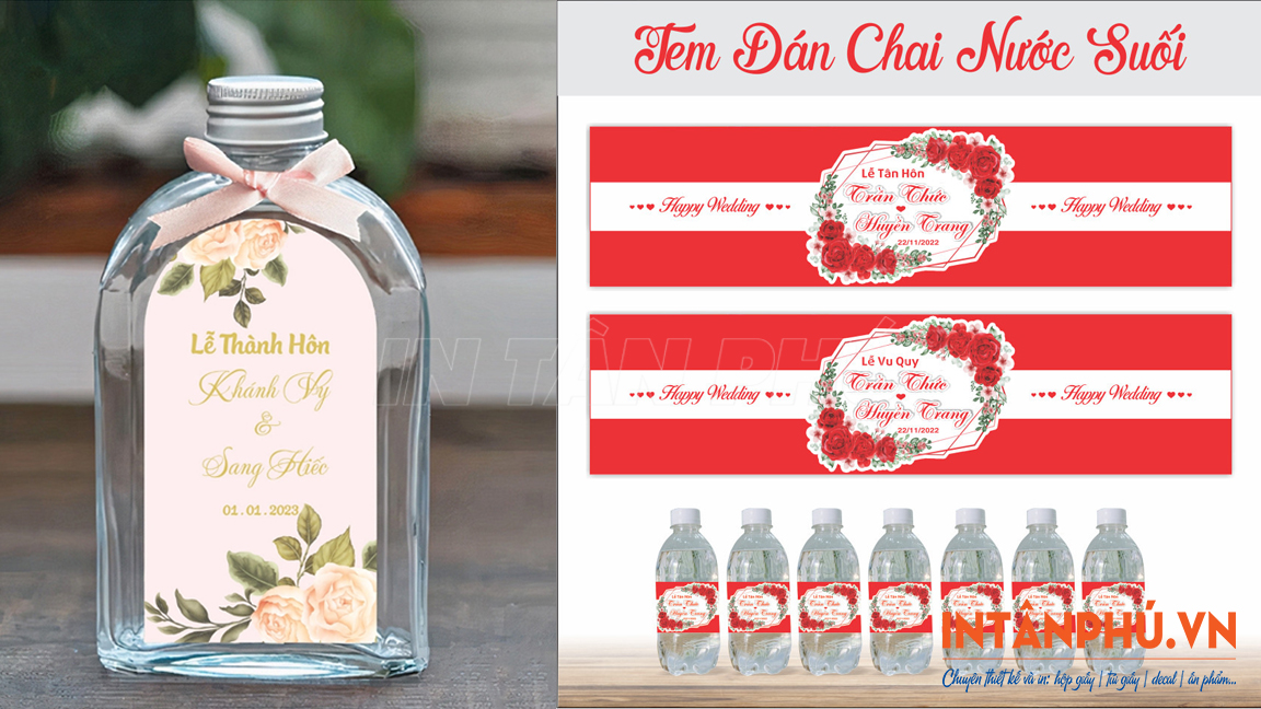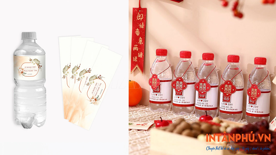 Quy cách in tem nhãn chai nước đám cưới tại In Tân Phú