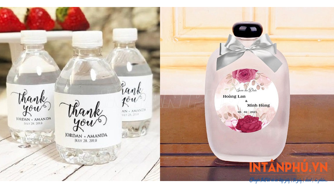 Ngày nay, việc in tem dán chai nước đám cưới, đám hỏi đã trở thành xu hướng phổ biến. Những chiếc tem nhỏ nhắn được thiết kế đồng điệu với concept tiệc là cách đơn giản nhưng tinh tế để tạo điểm nhấn riêng cho buổi tiệc. Không chỉ giúp chai nước trở nên đẹp mắt mà những mẫu tem nhãn này còn là lời cảm ơn ý nghĩa gửi đến khách mời. Thông tin chi tiết về loại tem dán này sẽ được In Tân Phú lần lượt gửi đến quý bạn đọc qua bài viết ngay sau đây!