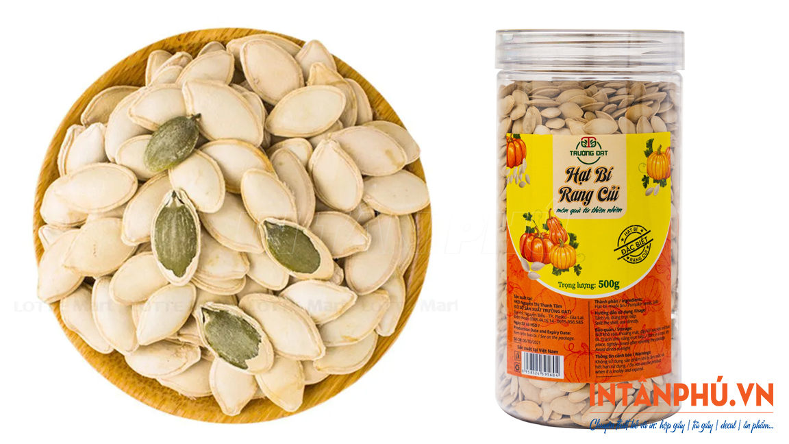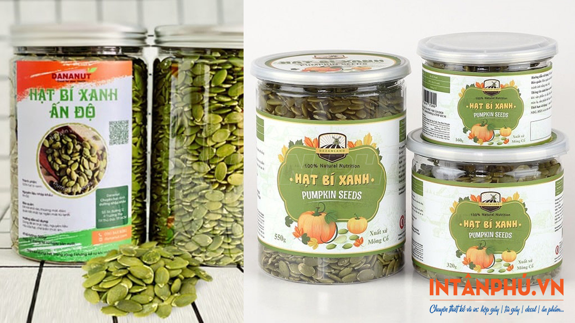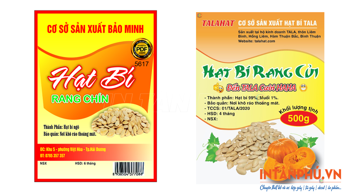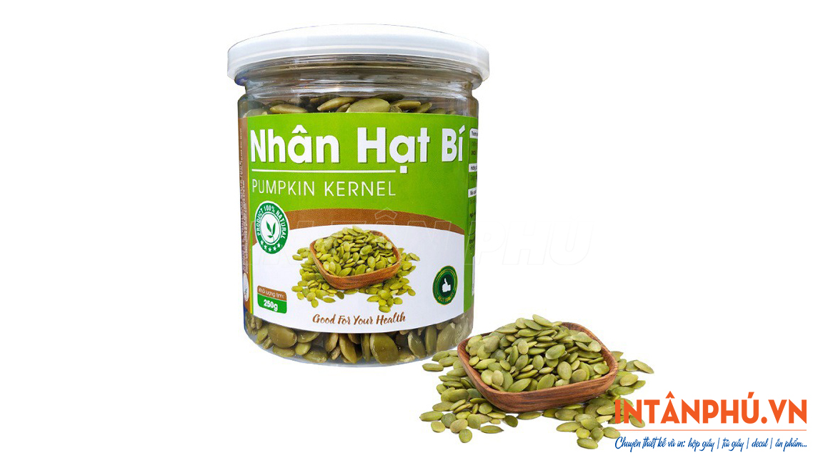 Tem dán hộp đựng hạt bí thiết kế ấn tượng