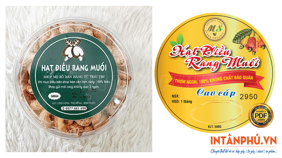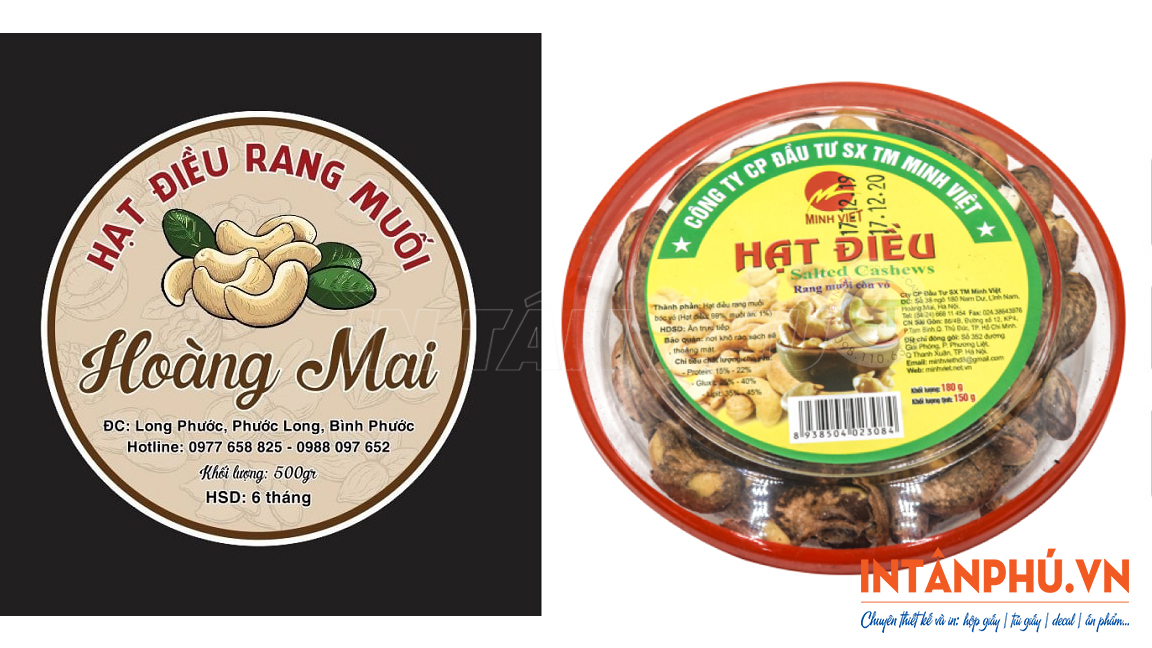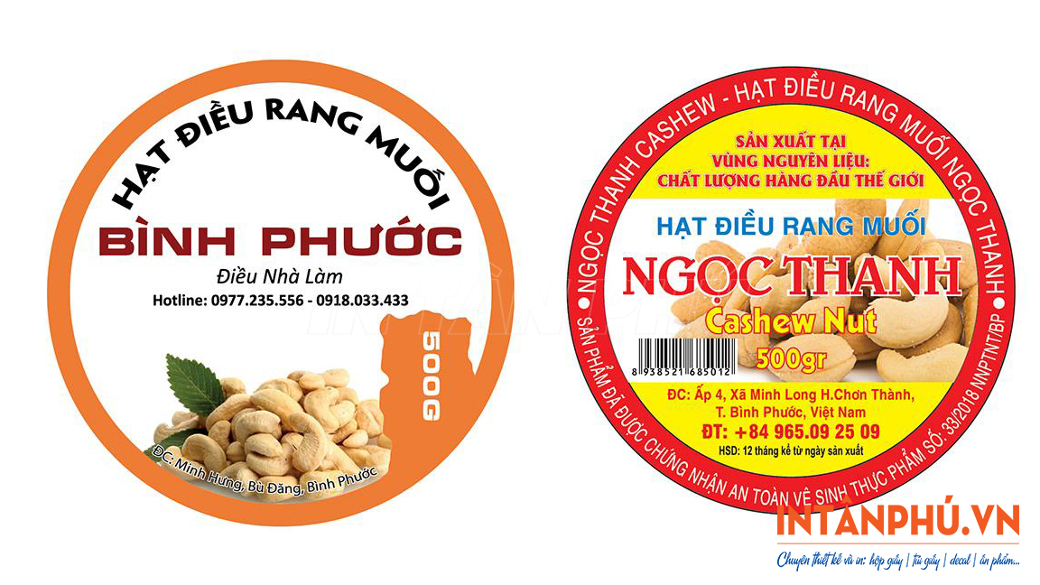 Với dịch vụ chuyên nghiệp, máy móc hiện đại và đội ngũ giàu kinh nghiệm, In Tân Phú cam kết mang đến những mẫu tem nhãn hạt điều rang muối sắc nét, bám dính tốt và thẩm mỹ cao giúp nâng tầm thương hiệu.