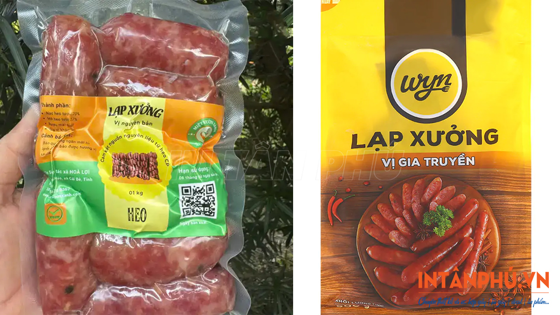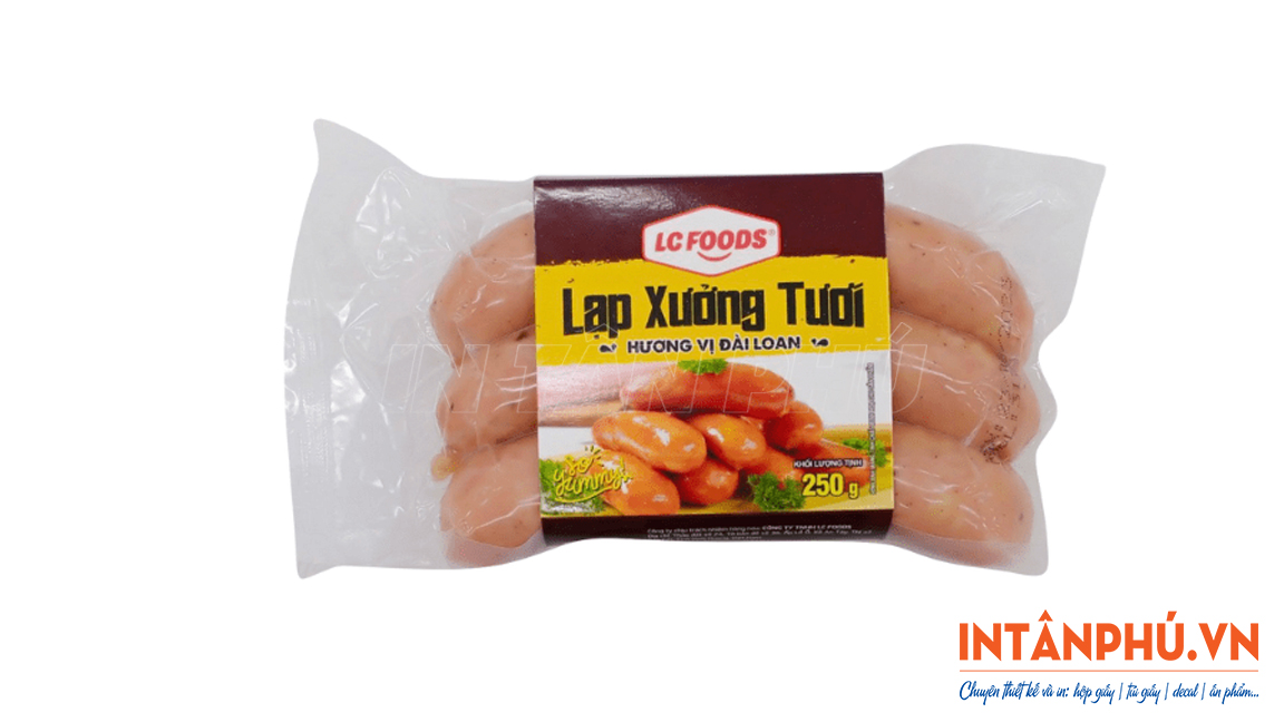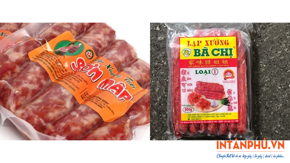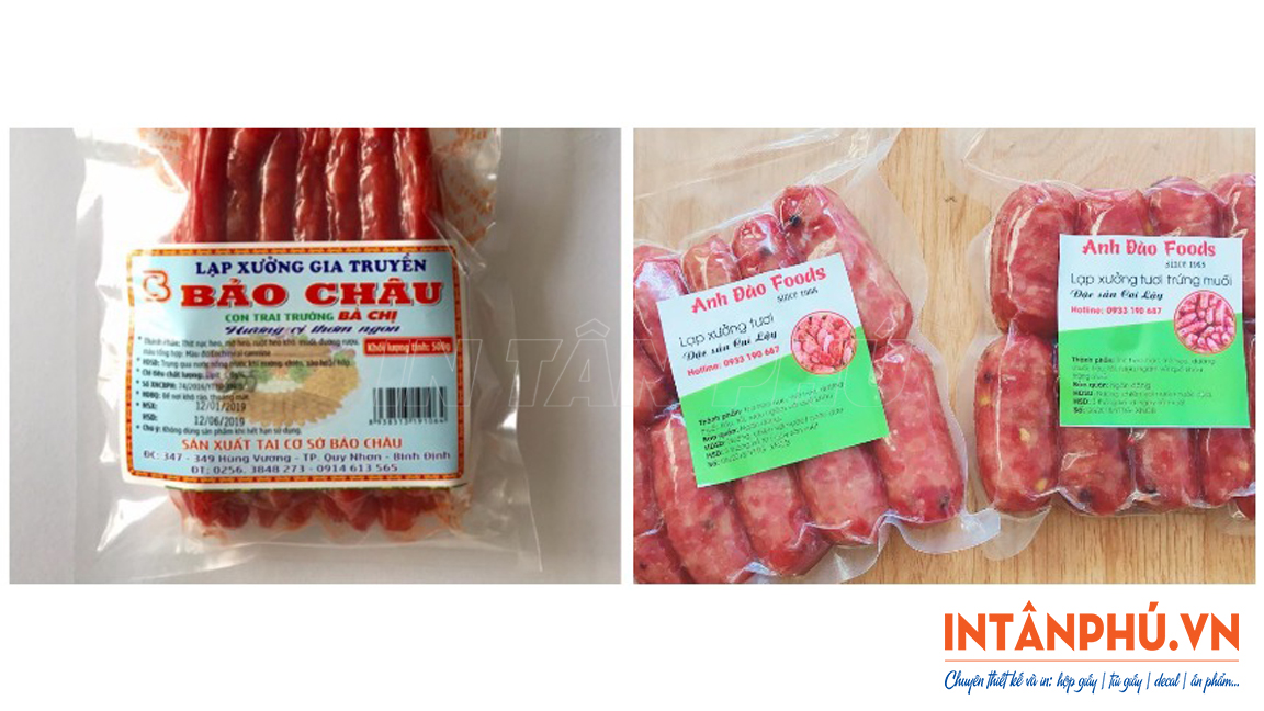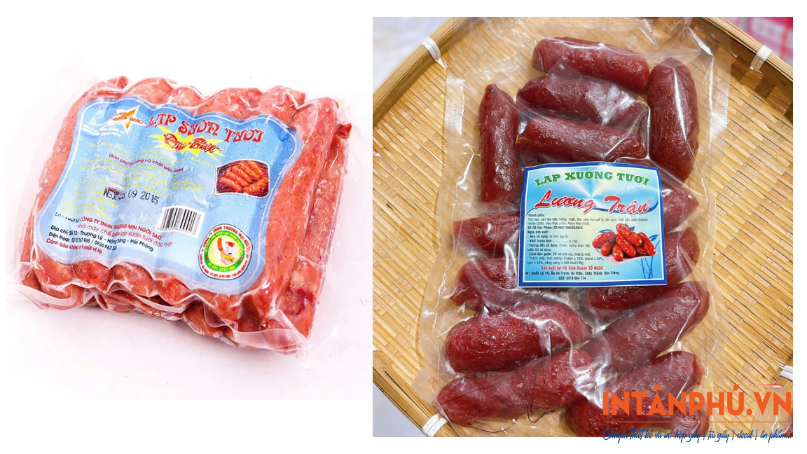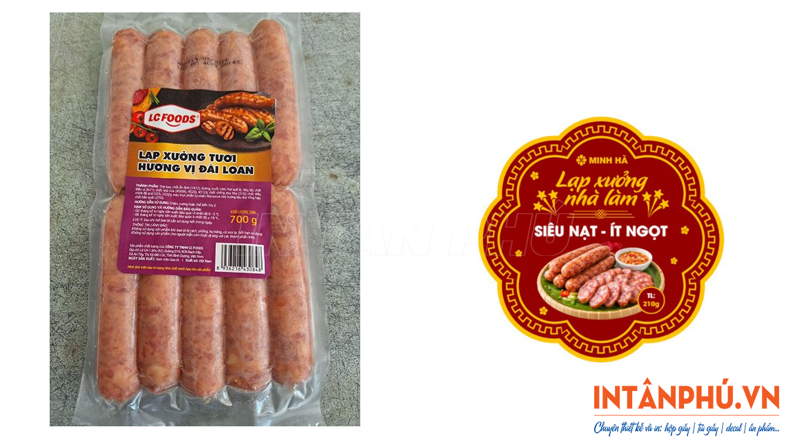 - Tăng tính thẩm mỹ, tạo lợi thế cạnh tranh: Tem nhãn đẹp giúp bao bì lạp xưởng trông đẹp mắt, thu hút hơn. Nhờ đó cũng dễ dàng tạo được lợi thế cạnh tranh trực tiếp trên kệ hàng siêu thị, cửa hàng.