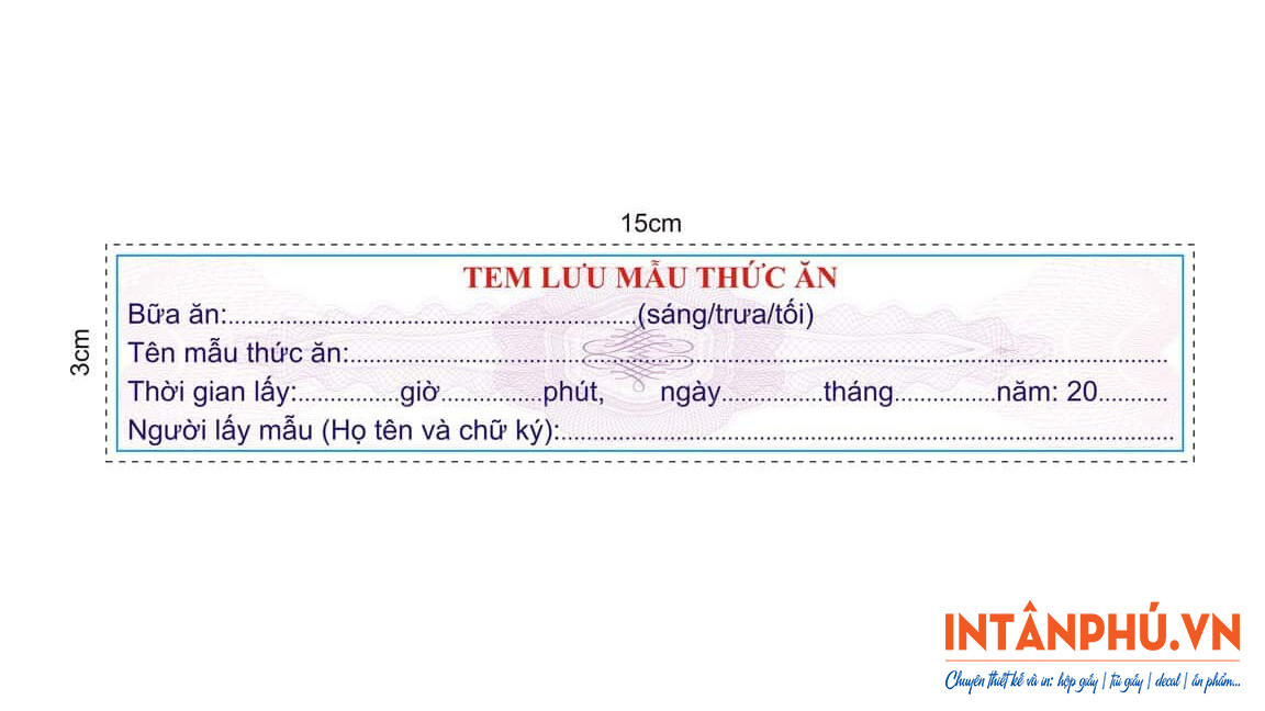 Kích thước tem lưu mẫu thức ăn thông dụng