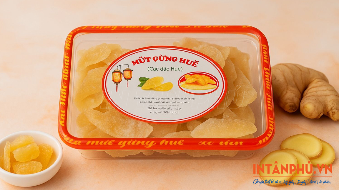 Tem dán hộp mứt gừng thiết kế chuyên nghiệp