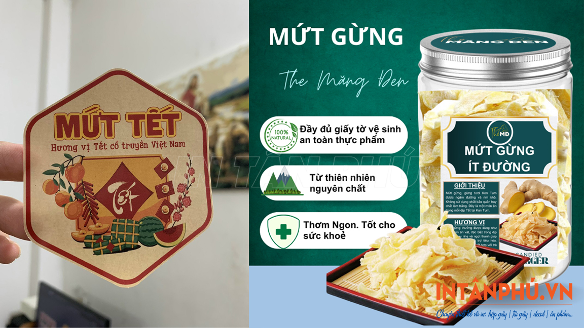 enlightenedTem mứt gừng không chỉ cung cấp thông tin sản phẩm mà còn nâng cao giá trị thương hiệu. Một chiếc tem chất lượng giúp người tiêu dùng tin tưởng, đồng thời đảm bảo tuân thủ các quy định về nhãn mác thực phẩm. Bài viết dưới đây từ In Tân Phú sẽ mang đến quý bạn đọc những thông tin về lợi ích của tem mứt gừng, chất liệu làm tem, kích thước, kiểu dáng, các mẫu tem mứt gừng đẹp cùng dịch vụ in tem mứt gừng giá rẻ của In Tân Phú. Mời quý bạn đọc cùng theo dõi.