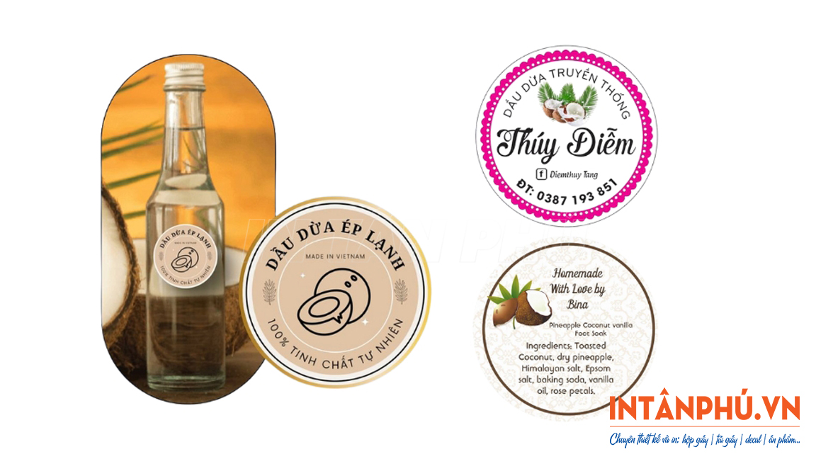 Đặt in tem dầu dừa giá rẻ, thiết kế theo yêu cầu tại In Tân Phú