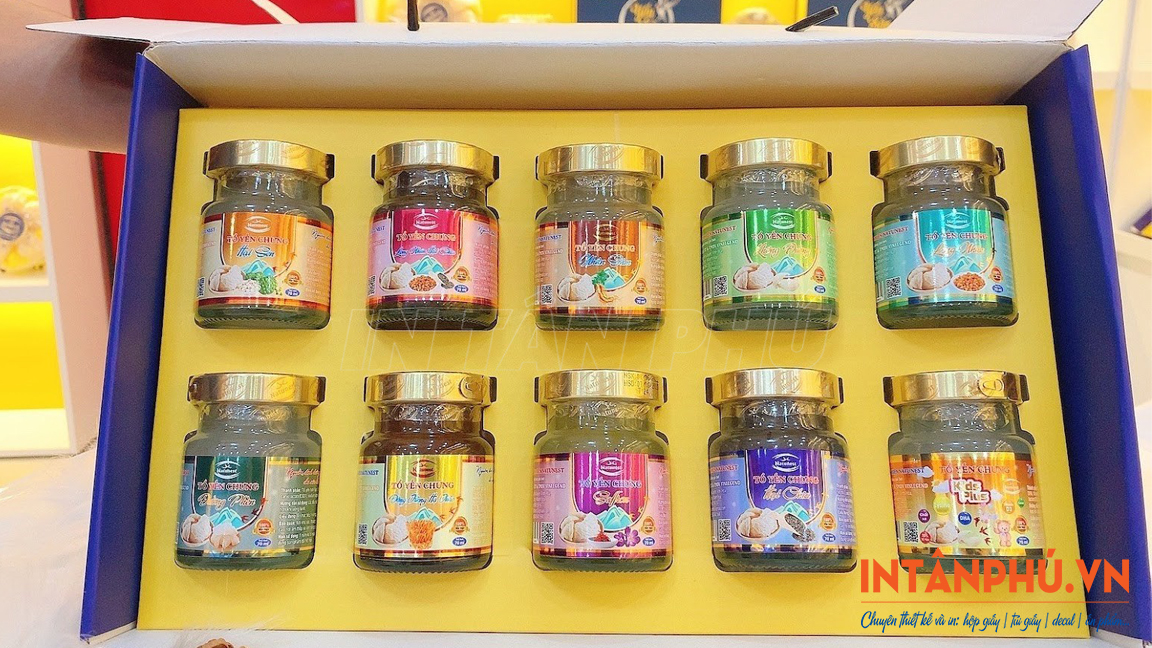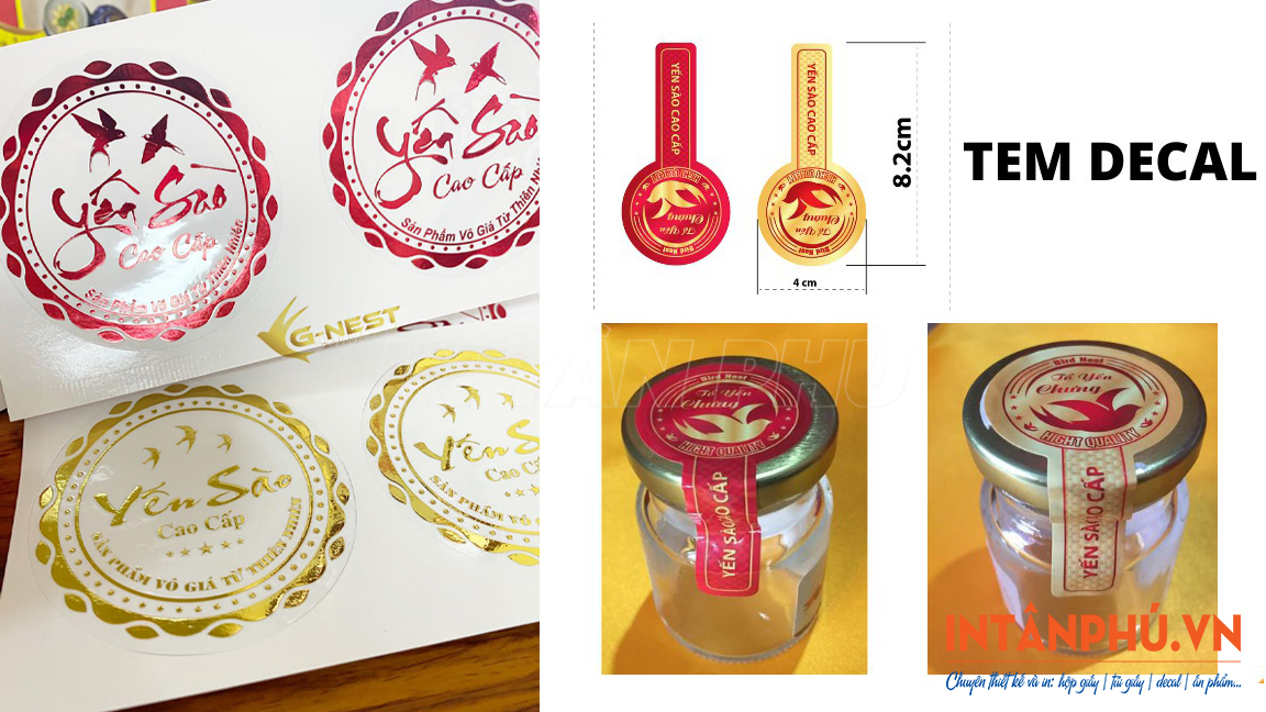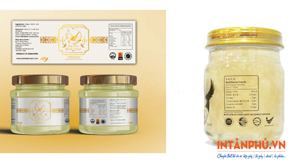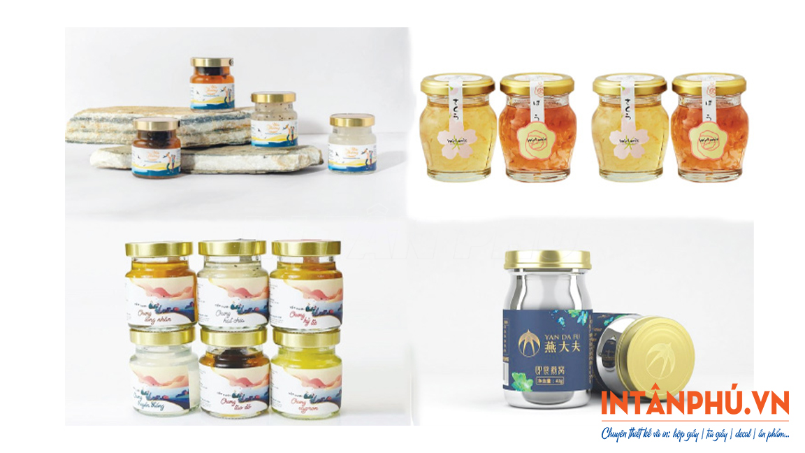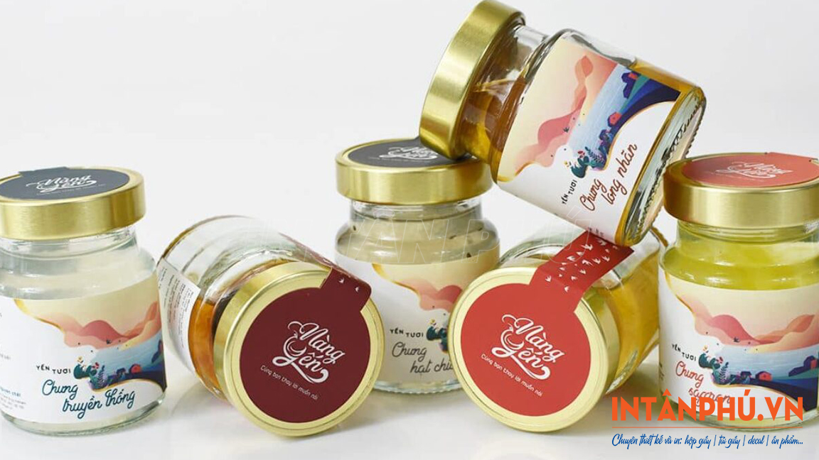• Tăng tính thẩm mỹ cho bao bì: Hũ, lọ yến sào sẽ trở nên nổi bật, thu hút hơn nhờ thiết kế sang trọng, tinh tế của tem nhãn được dán bên ngoài.