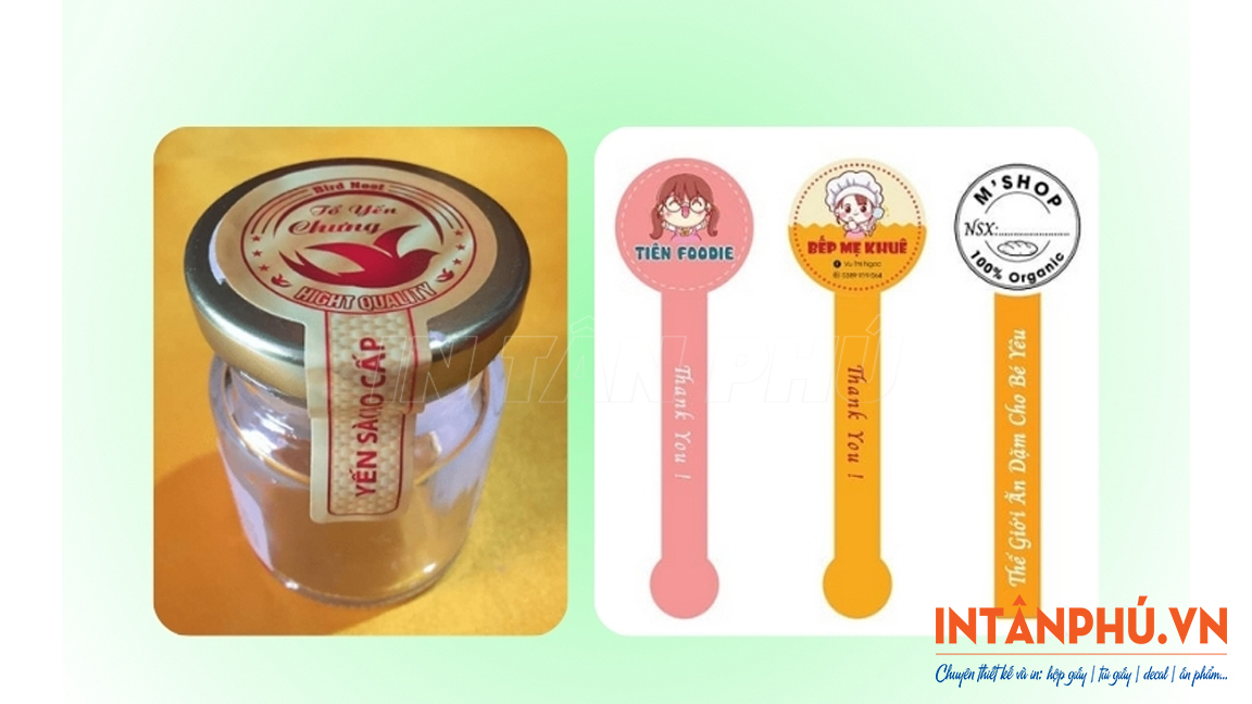 • Tem niêm phong chai lọ đựng yến chưng;