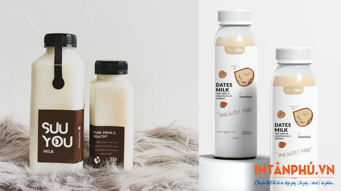 Hiện nay, tem sữa hạt được in chủ yếu bằng decal nhựa và decal giấy, tùy theo nhu cầu sử dụng: