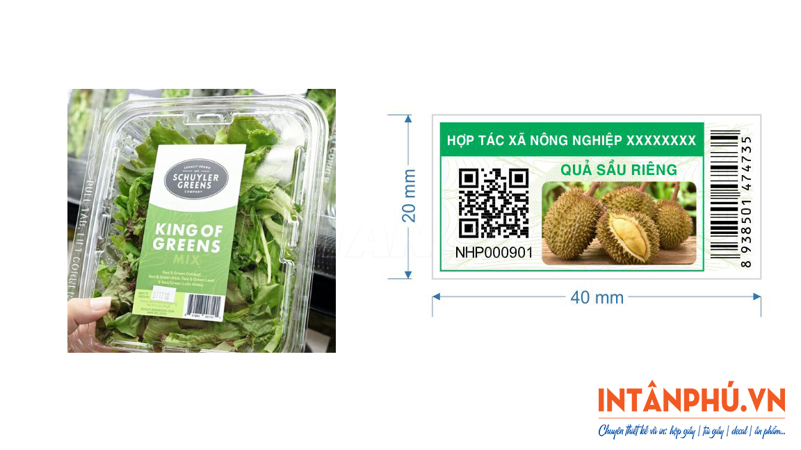 • Hình ảnh sản phẩm: Hình ảnh minh họa được in trực tiếp trên tem nhằm tăng tính nhận diện và thu hút người tiêu dùng.