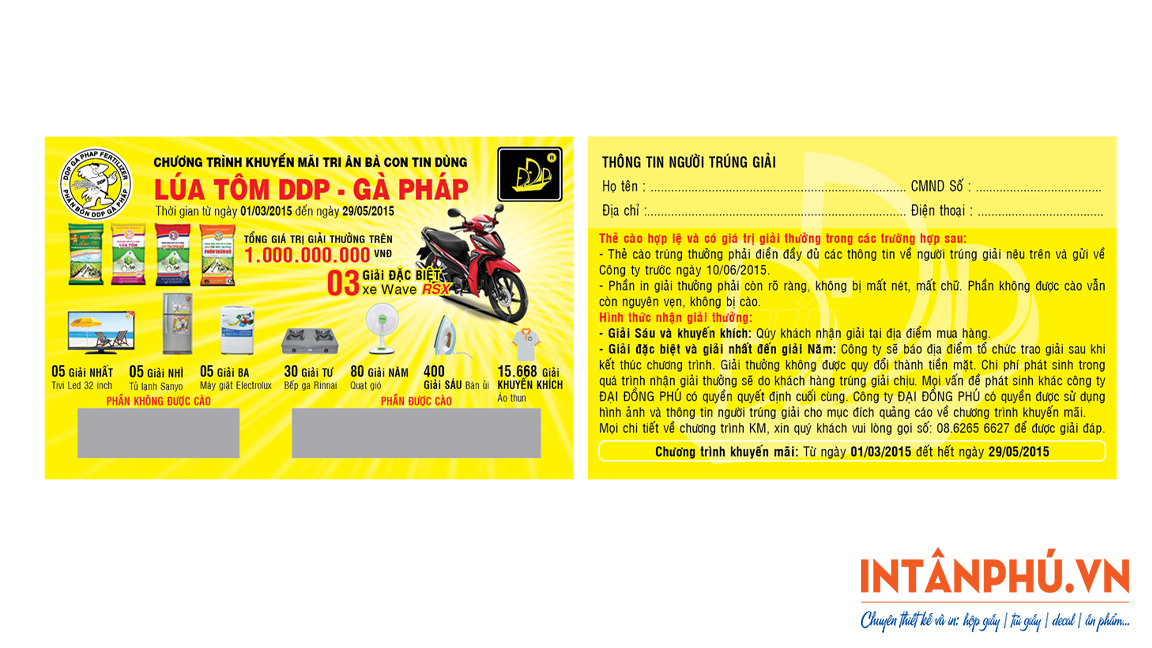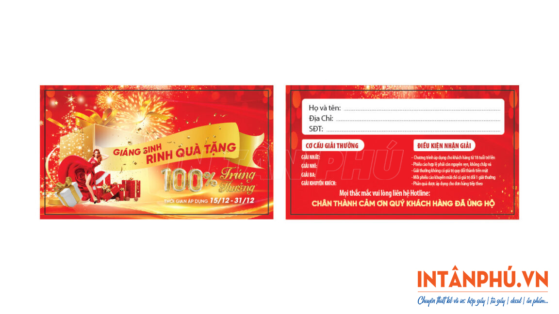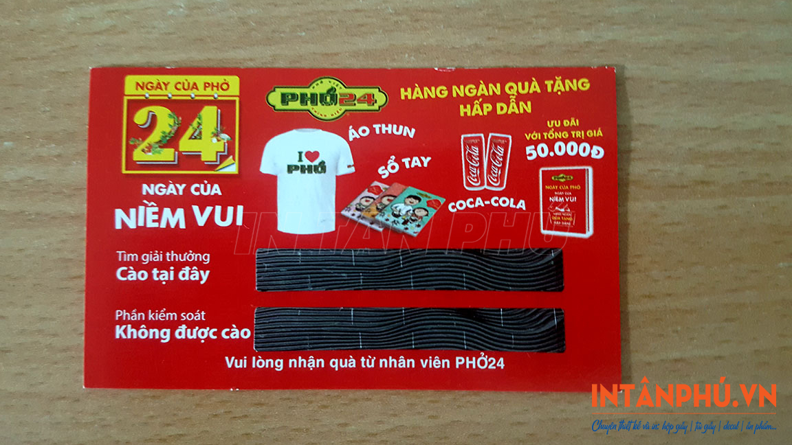 Với hơn 15 năm kinh nghiệm trong ngành in ấn, In Tân Phú là xưởng in trực tiếp, không qua trung gian, chuyên cung cấp dịch vụ in thẻ cào trúng thưởng theo yêu cầu với: