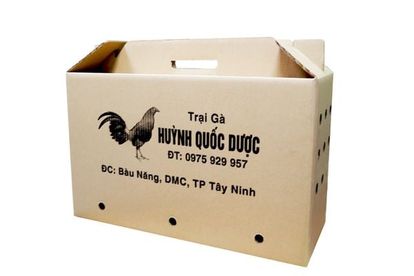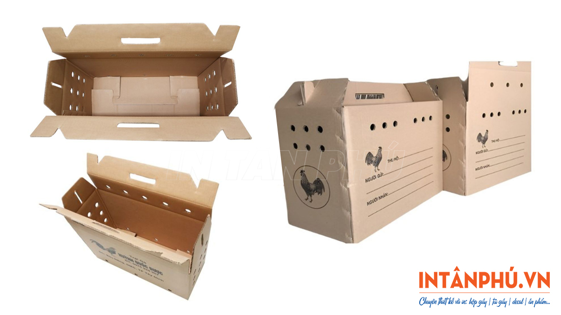 - Thiết kế chuyên dụng cho gà sống: Thùng carton đựng gà cần có kích thước rộng rãi, bên trên được khoét nhiều lỗ tròn giúp gà dễ thở và giảm căng thẳng trong lúc di chuyển.