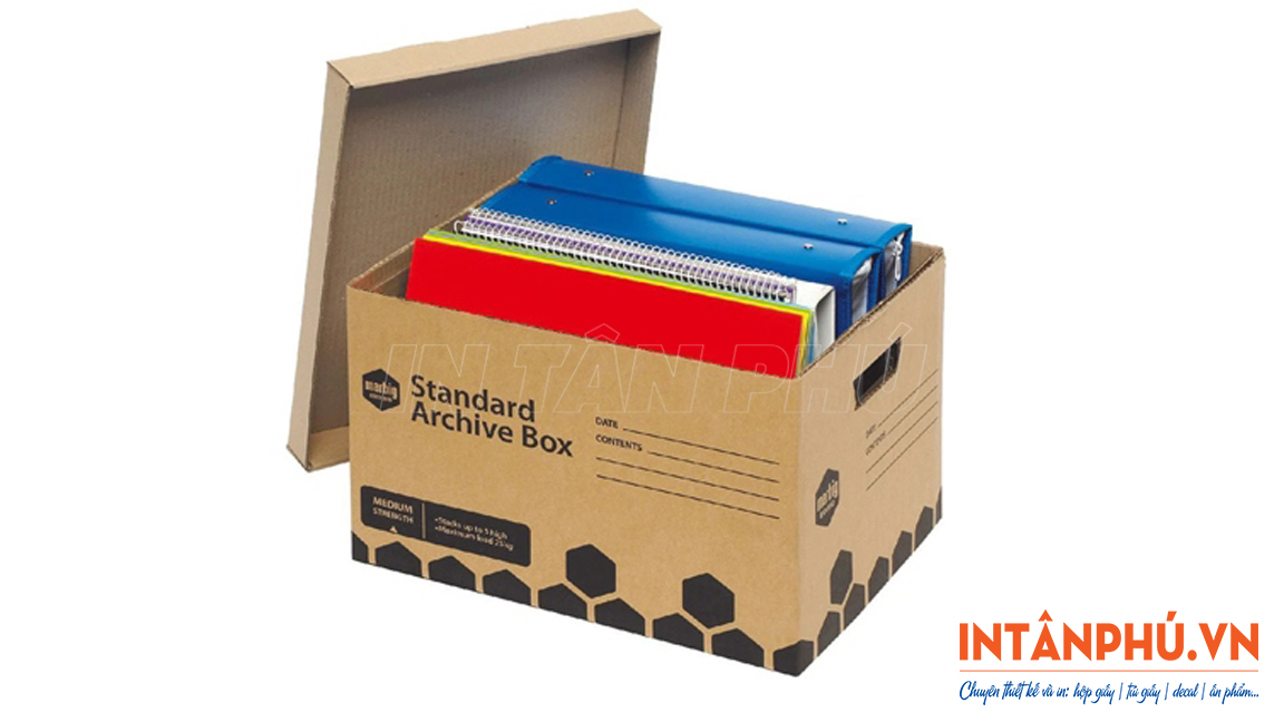 • Kích thước 29.7 x 21 x n cm: Kích thước theo chuẩn khổ giấy A4, chiều cao có thể thay đổi linh hoạt tùy vào số lượng giấy cần đựng. Loại thùng này dễ dàng xếp chồng khi lưu kho hoặc vận chuyển.