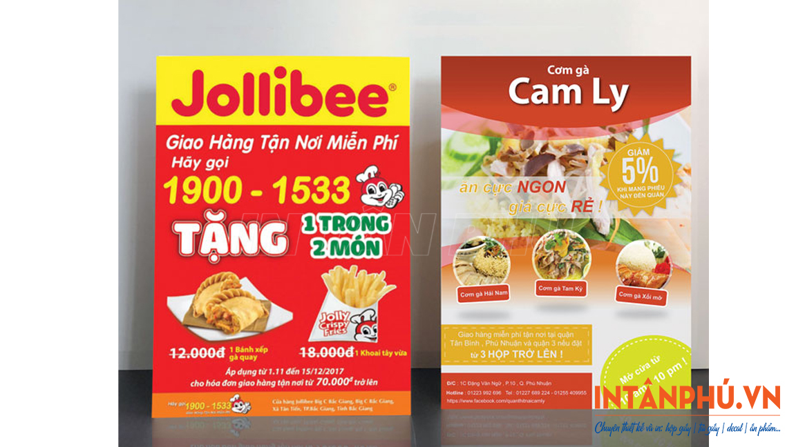 Ngoài tờ rơi khai trương, In Tân Phú còn nhận in: tờ rơi quảng cáo, voucher, poster, menu, card visit, tem nhãn, … giúp khách hàng xây dựng hình ảnh thương hiệu đồng bộ.