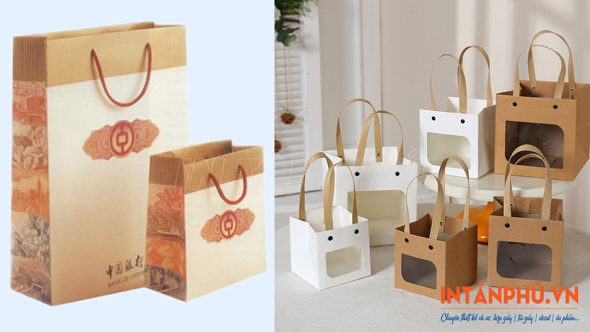 - Túi đáy đứng có quai xách: Dễ mang theo, phù hợp cho túi quà tặng. Quai có thể làm từ dây dù, dây giấy xoắn hoặc ruy băng.