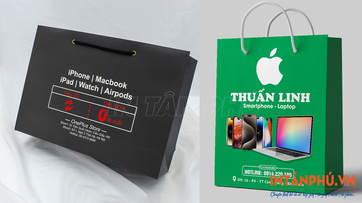 Quy cách in túi giấy đựng điện thoại và phụ kiện di động